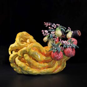Kỷ Cong Rồng Chầu Nguyệt 3 Chén Men Rạn Bọc Đồng Bát Tràng