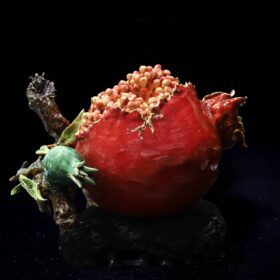 Bộ Trà Thờ Đào Đắp Nổi Men Rạn Dát Vàng Bát Tràng