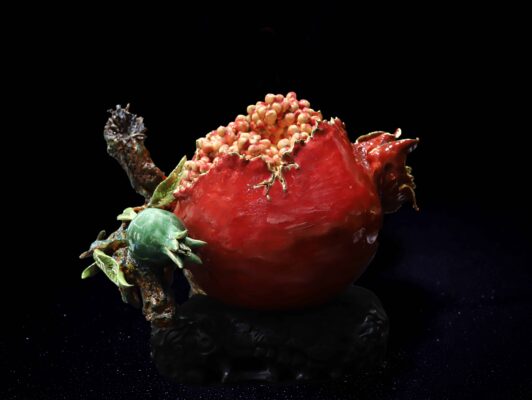 Kỷ Thẳng Rồng Chầu Nguyệt 5 Chén Men Rạn Đắp Nổi Dát Vàng Bát Tràng