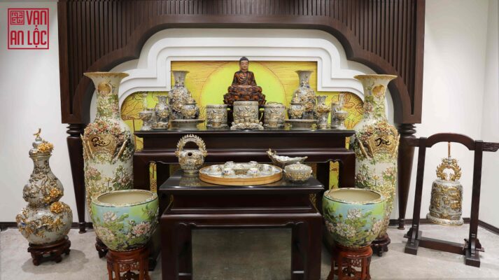 Bảo Bình Phú Quý Trường Xuân Men Rạn Vẽ Vàng Bát Tràng