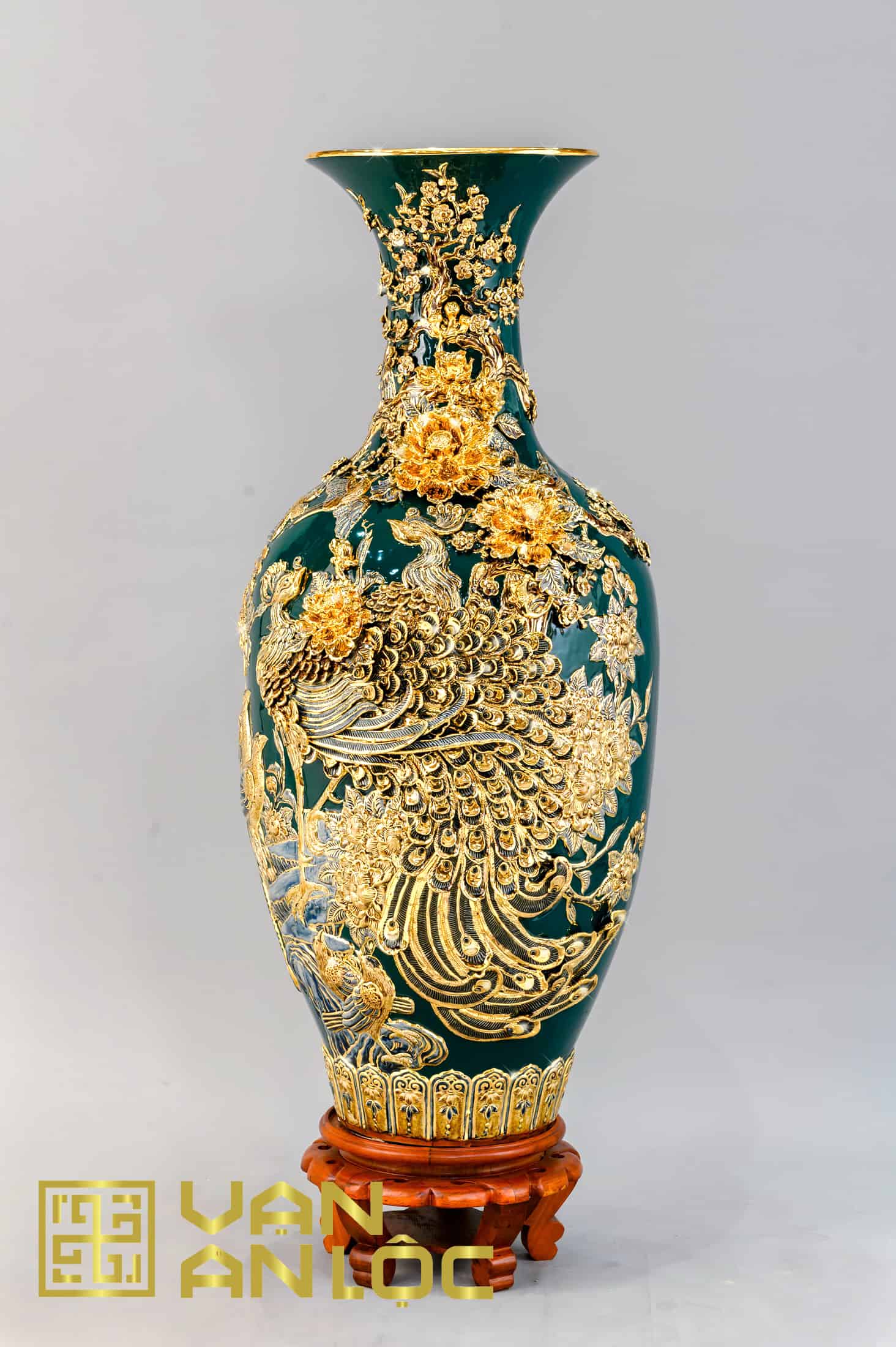 Bảo Bình Phú Quý Trường Xuân Men Xanh Lục Bảo Vẽ Vàng Bát Tràng