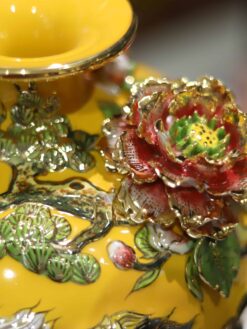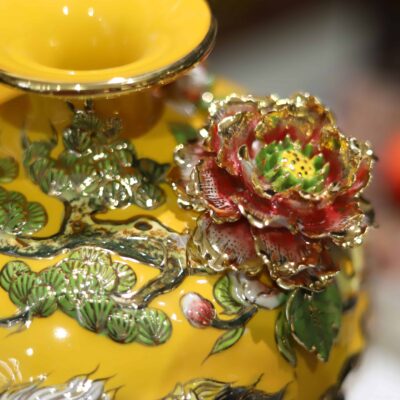Tỏi Phệ Bách Điểu Chầu Hoàng Men Rạn Bọc Đồng Dát Vàng Bát Tràng