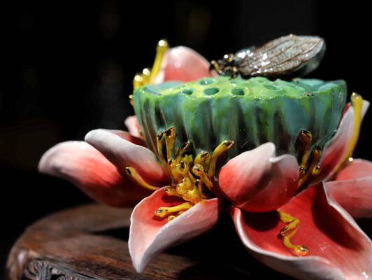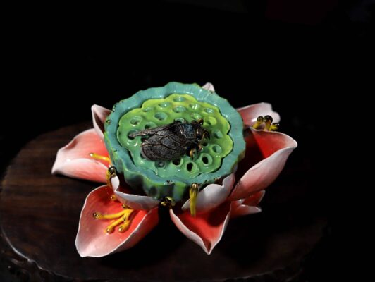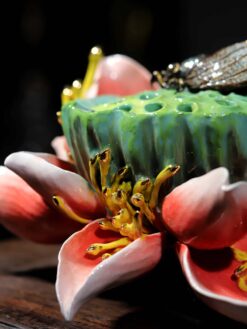 Bông sen gốm sứ được đắp nổi tinh xảo không chỉ là một tác phẩm trang trí mà còn là vật phẩm mang giá trị tâm linh sâu sắc.