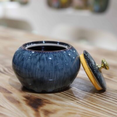 Hũ chè có nắp kín, giúp giữ hương – chống ẩm – bảo toàn vị trà, đồng thời hình dáng chắc tay, hài hòa mang ý nghĩa tích tụ và gìn giữ tinh hoa. Không chỉ là vật dụng đựng trà, hũ chè men xanh hỏa biến Bát Tràng còn là một điểm nhấn trang trí trang nhã, thể hiện gu thẩm mỹ tinh tế và sự trân trọng giá trị truyền thống trong từng khoảnh khắc thưởng trà.