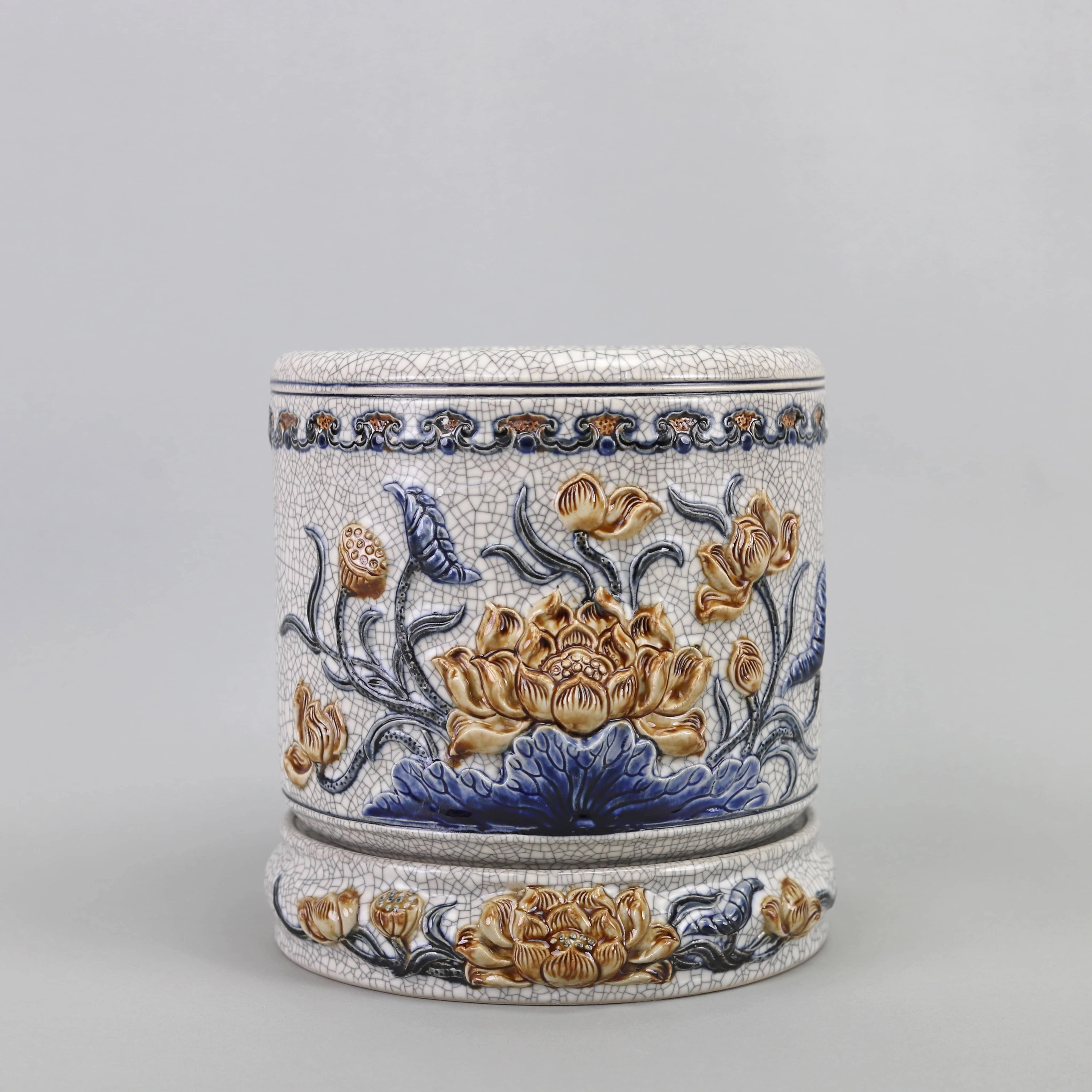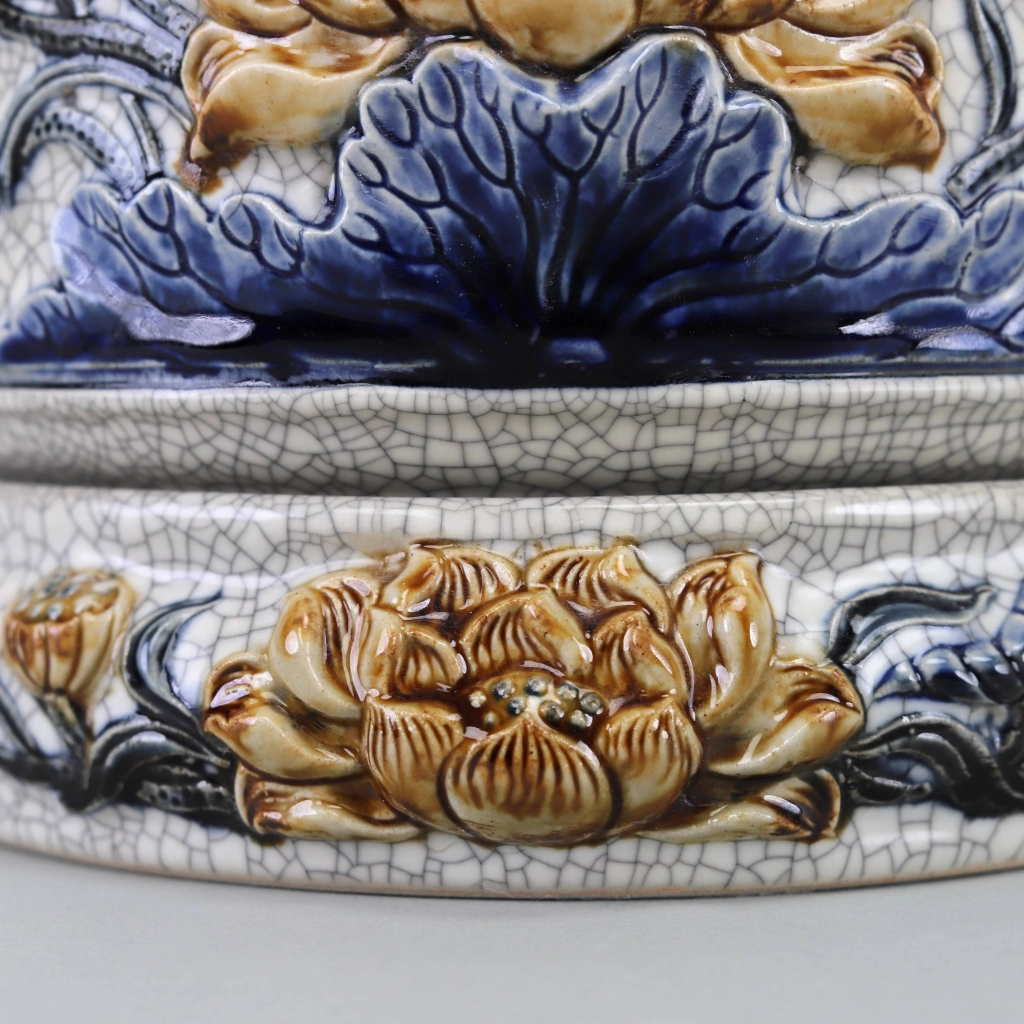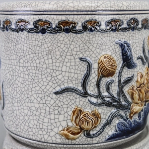 Bát Hương Ngọc Bảo Liên Hoa Men Rạn Đắp Nổi Cao Cấp Bát Tràng