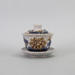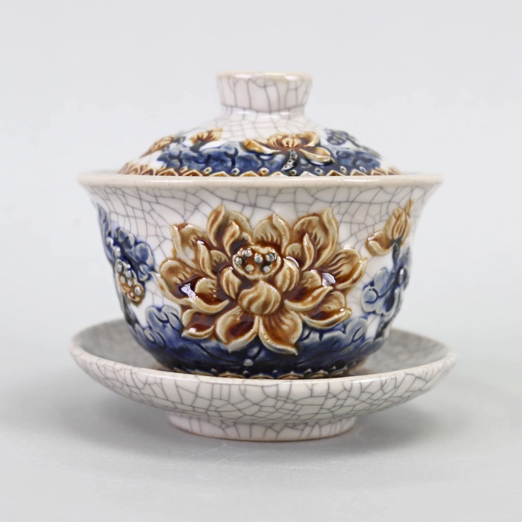 Bát Sâm Liên Hoa Men Rạn Đắp Nổi Cao Cấp Bát Tràng