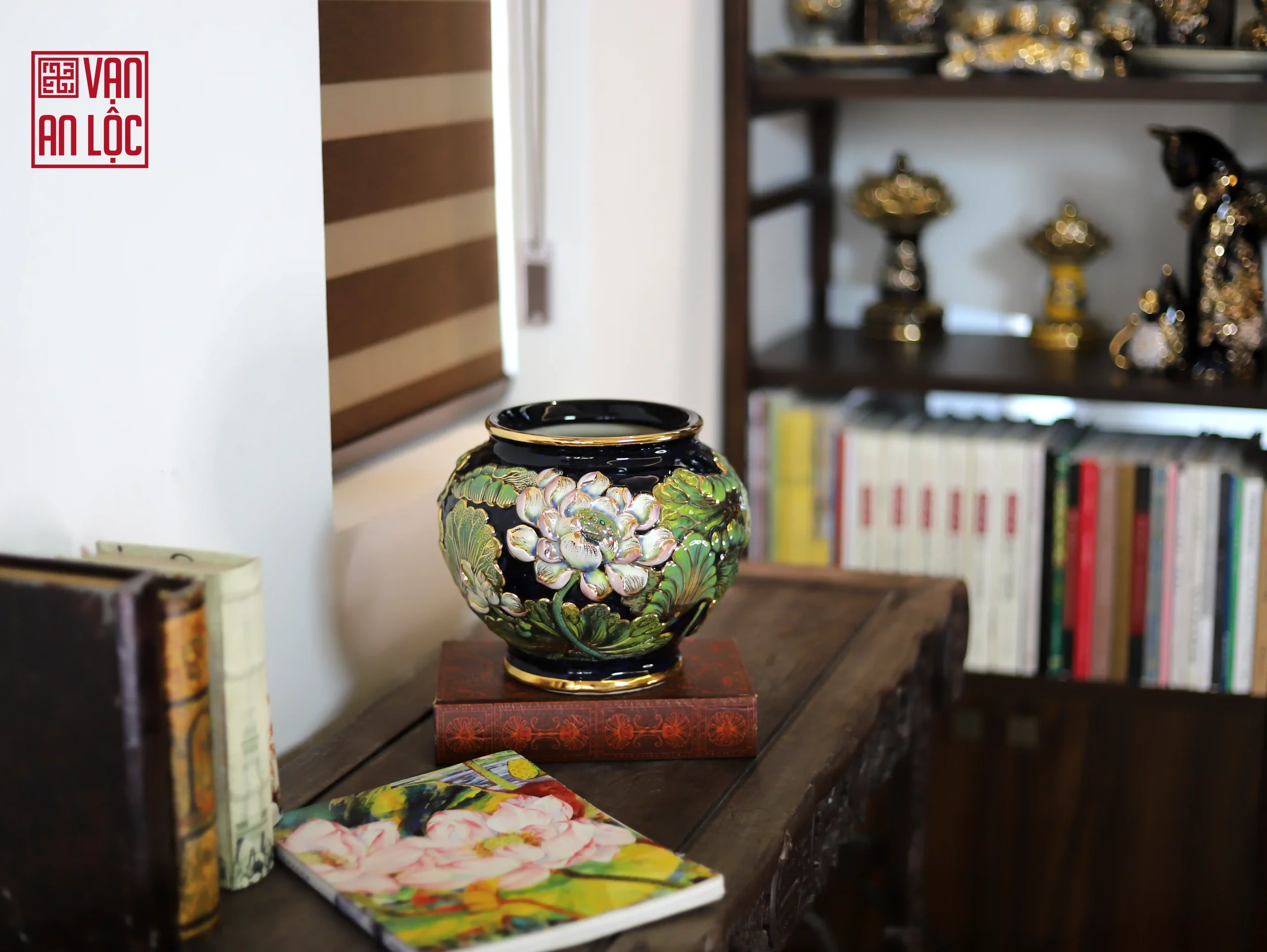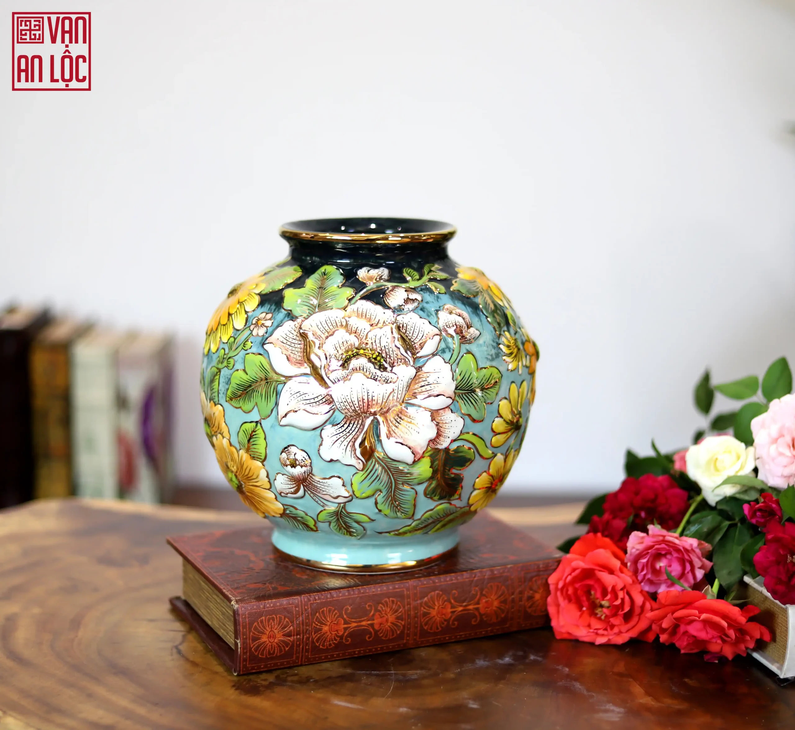Bình hoa đắp nổi vẽ vàng Vạn An Lộc không chỉ giúp không gian thêm sức sống mà còn mang ý nghĩa thu hút tài lộc, bình an cho gia đạo. Đây cũng là lựa chọn quà tặng tân gia, quà biếu đối tác lý tưởng, khẳng định tâm ý của người tặng.