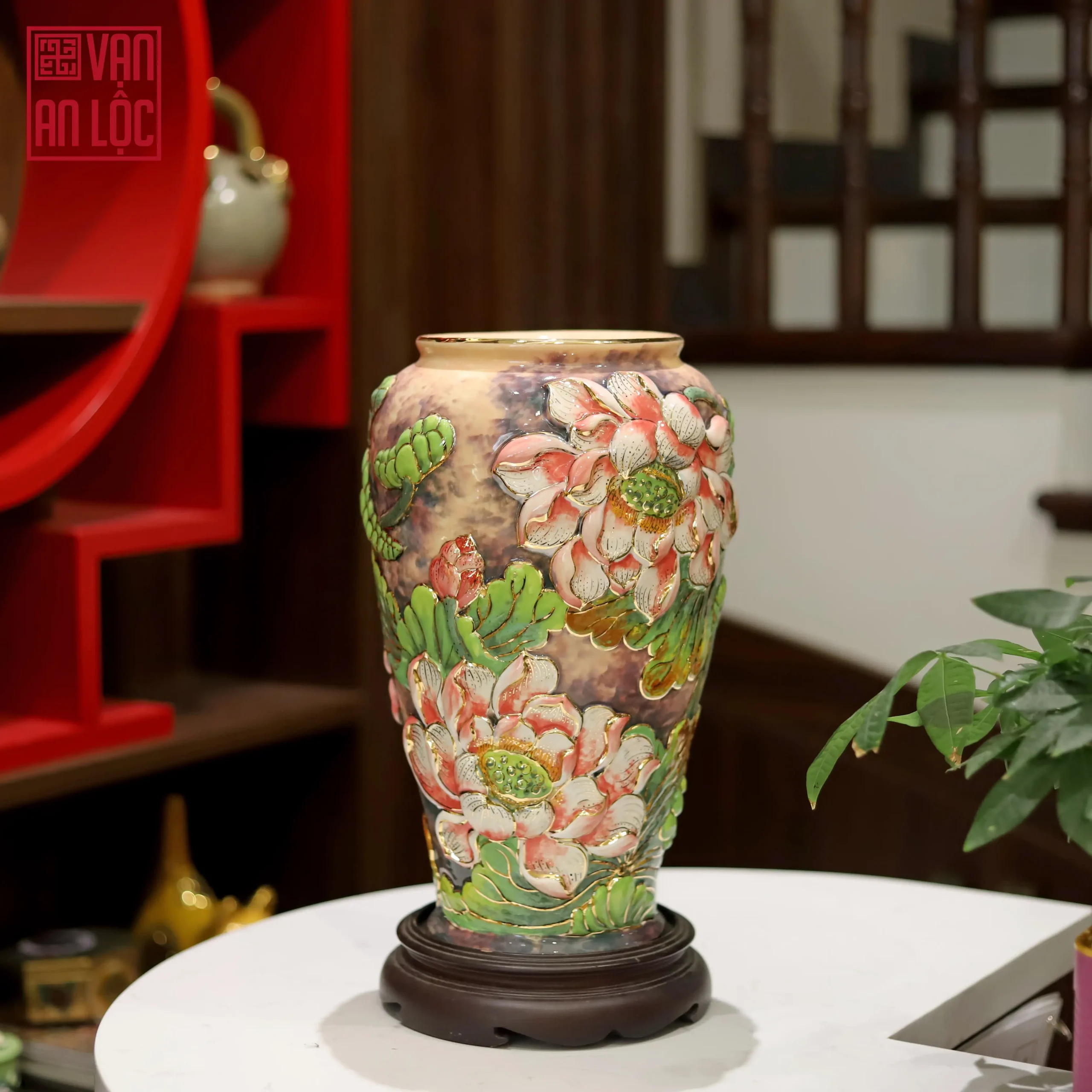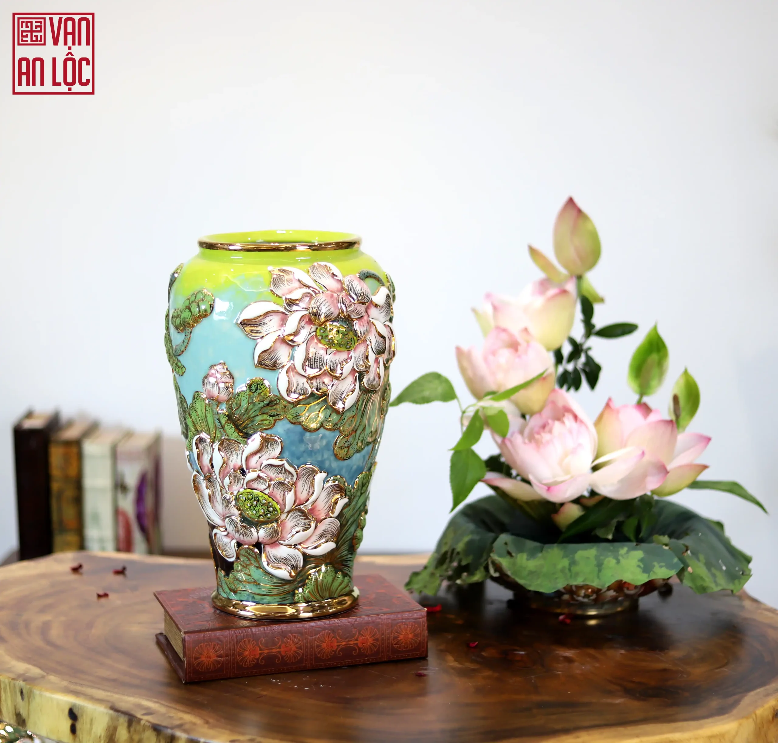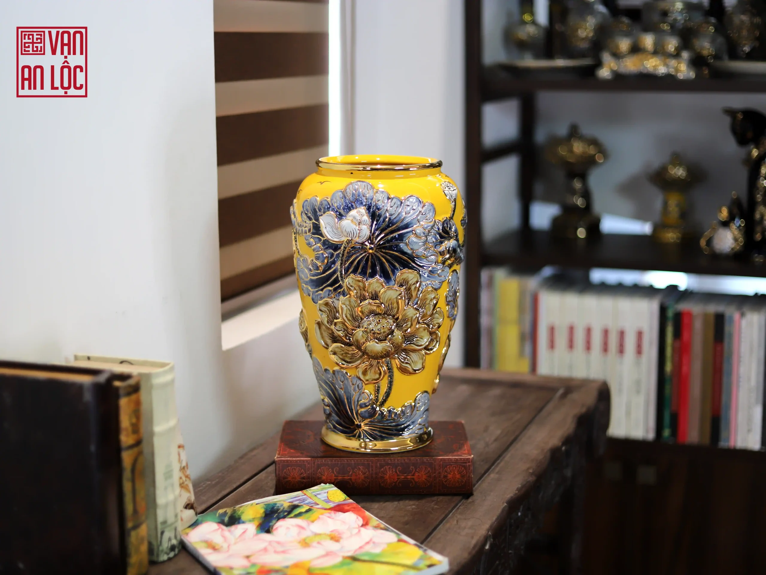 Trong không gian sống hiện đại, một chiếc bình hoa không chỉ đơn thuần là vật dụng cắm hoa, mà còn là tác phẩm nghệ thuật thể hiện gu thẩm mỹ và đẳng cấp của gia chủ. Bộ sưu tập Bình hoa đắp nổi vẽ vàng từ Gốm sứ Vạn An Lộc chính là sự kết tinh hoàn hảo giữa kỹ nghệ truyền thống và hơi thở đương đại.