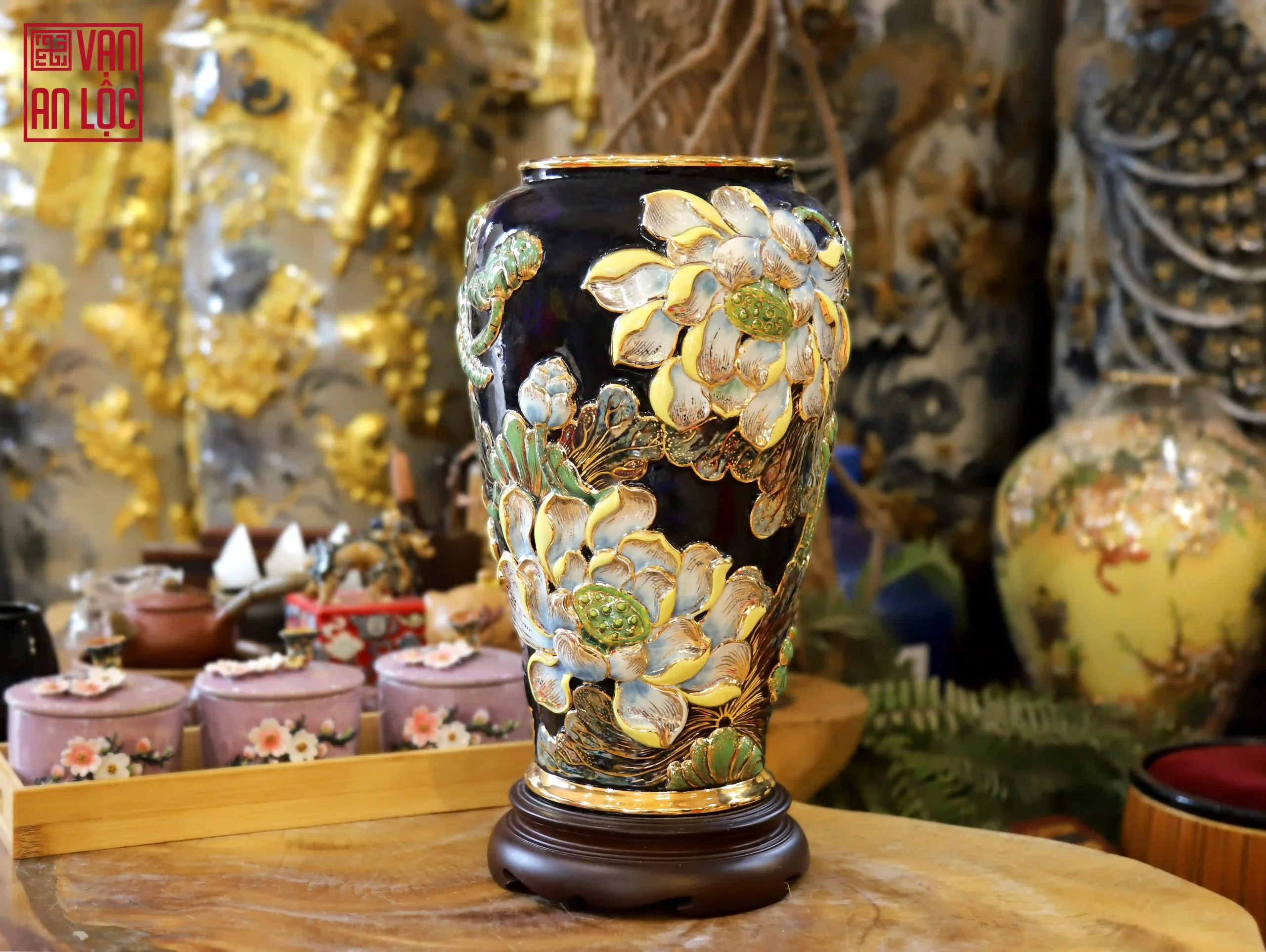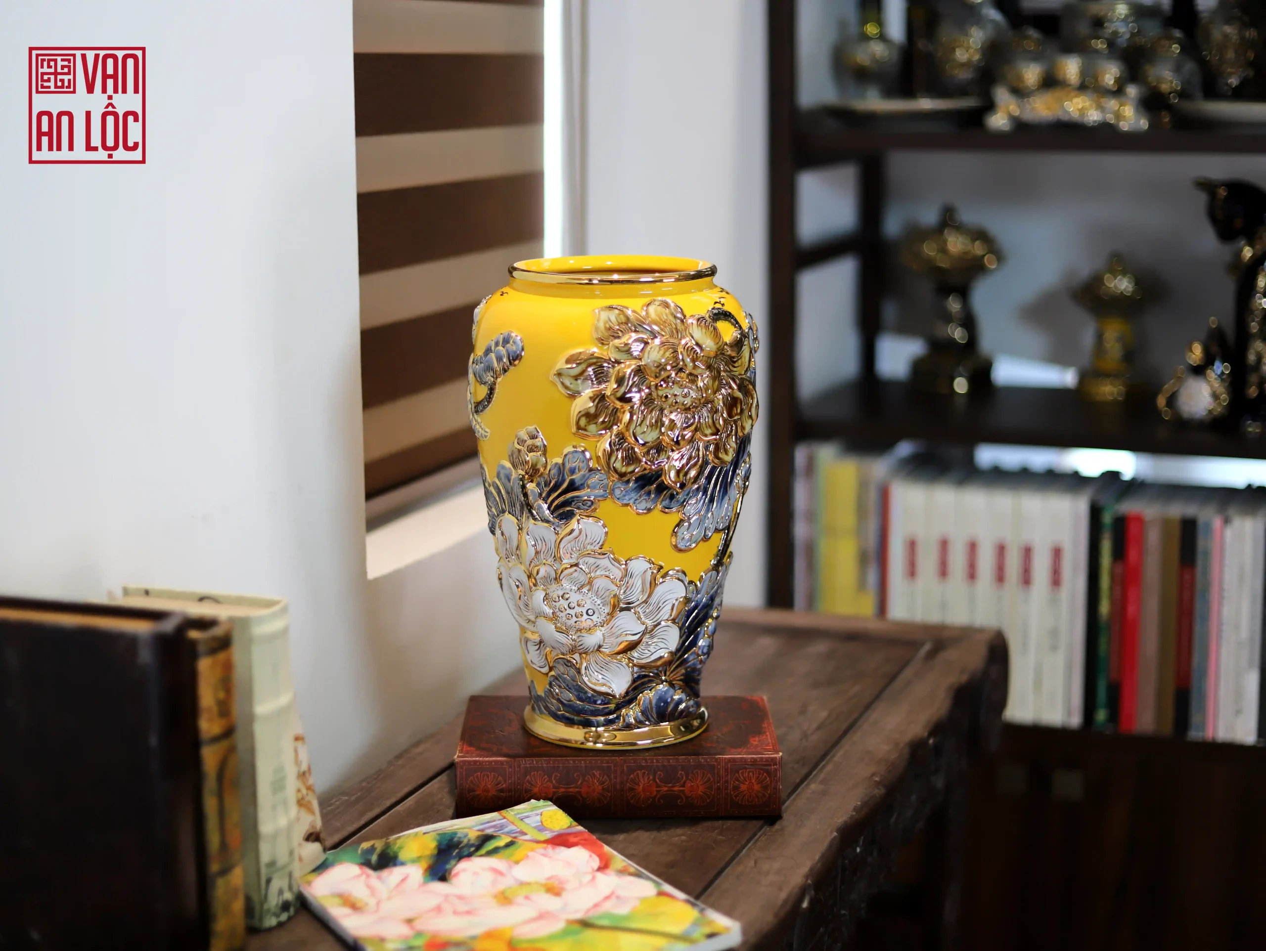 Bình hoa đắp nổi vẽ vàng Vạn An Lộc không chỉ giúp không gian thêm sức sống mà còn mang ý nghĩa thu hút tài lộc, bình an cho gia đạo. Đây cũng là lựa chọn quà tặng tân gia, quà biếu đối tác lý tưởng, khẳng định tâm ý của người tặng.