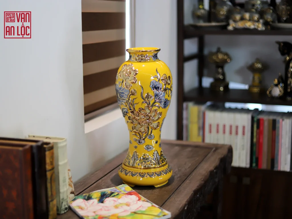 Bình hoa đắp nổi vẽ vàng Vạn An Lộc không chỉ giúp không gian thêm sức sống mà còn mang ý nghĩa thu hút tài lộc, bình an cho gia đạo. Đây cũng là lựa chọn quà tặng tân gia, quà biếu đối tác lý tưởng, khẳng định tâm ý của người tặng.