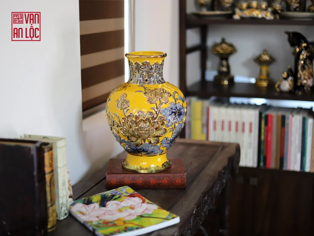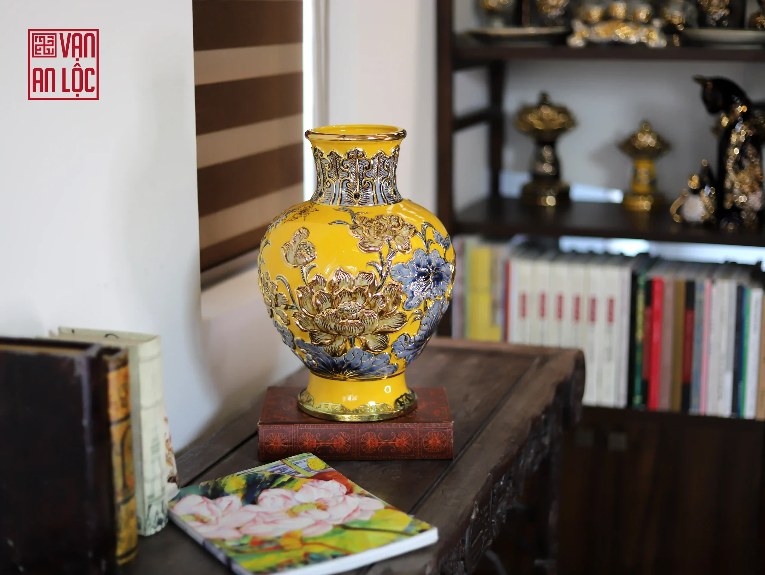 Bình hoa đắp nổi vẽ vàng Vạn An Lộc không chỉ giúp không gian thêm sức sống mà còn mang ý nghĩa thu hút tài lộc, bình an cho gia đạo. Đây cũng là lựa chọn quà tặng tân gia, quà biếu đối tác lý tưởng, khẳng định tâm ý của người tặng.