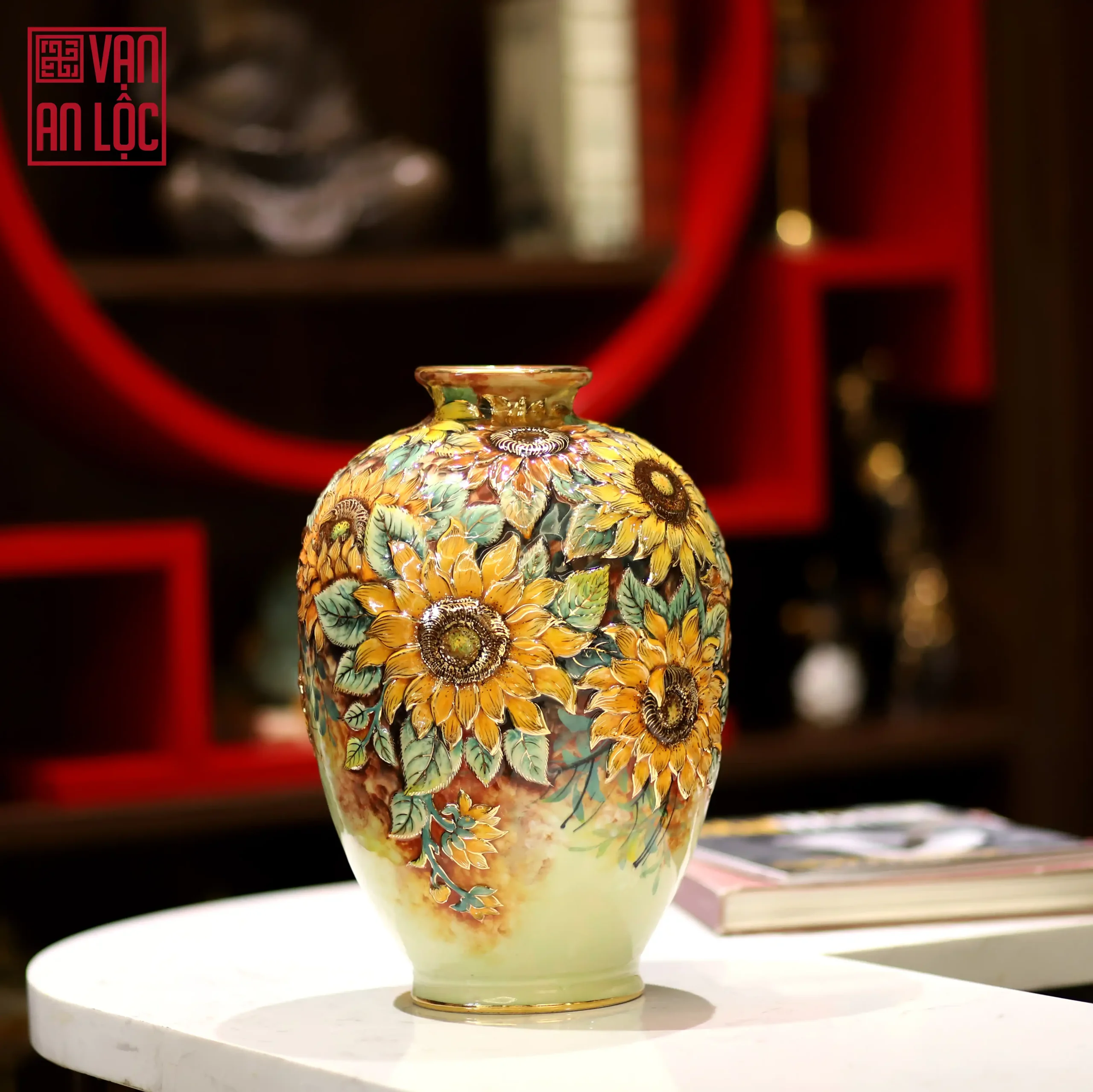 Bình hoa đắp nổi vẽ vàng Vạn An Lộc không chỉ giúp không gian thêm sức sống mà còn mang ý nghĩa thu hút tài lộc, bình an cho gia đạo. Đây cũng là lựa chọn quà tặng tân gia, quà biếu đối tác lý tưởng, khẳng định tâm ý của người tặng.