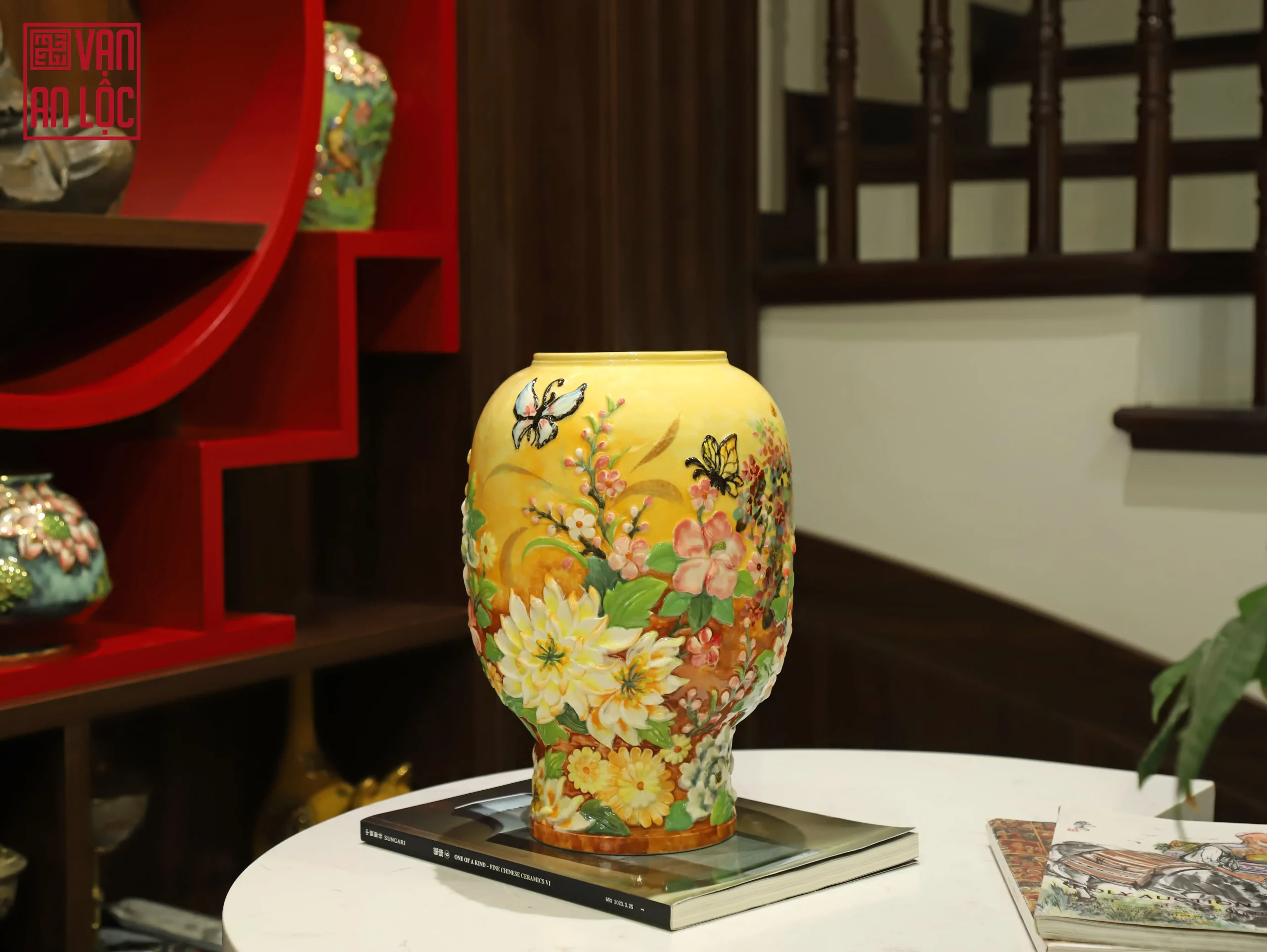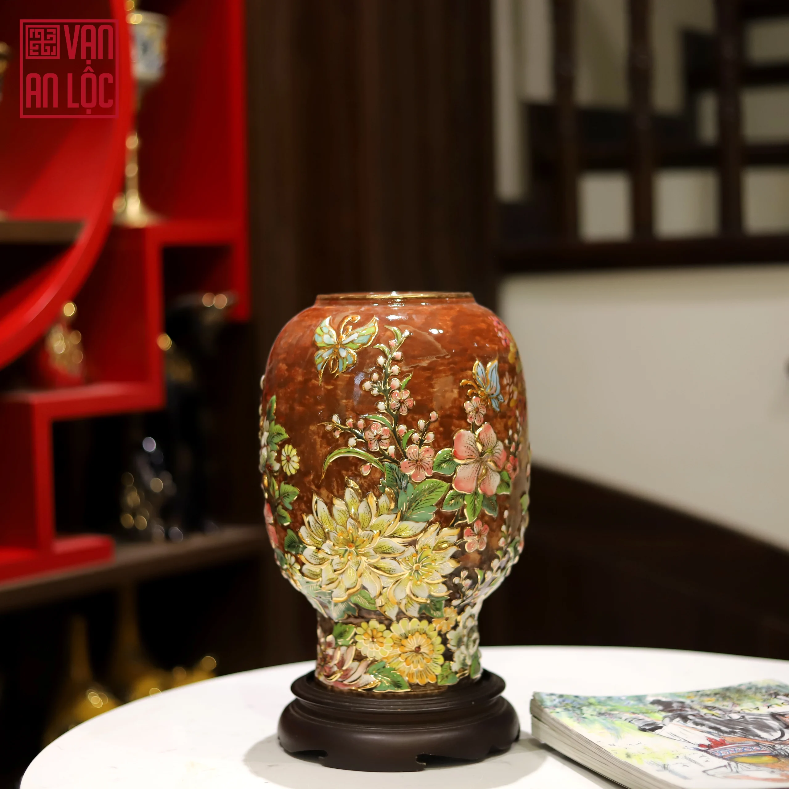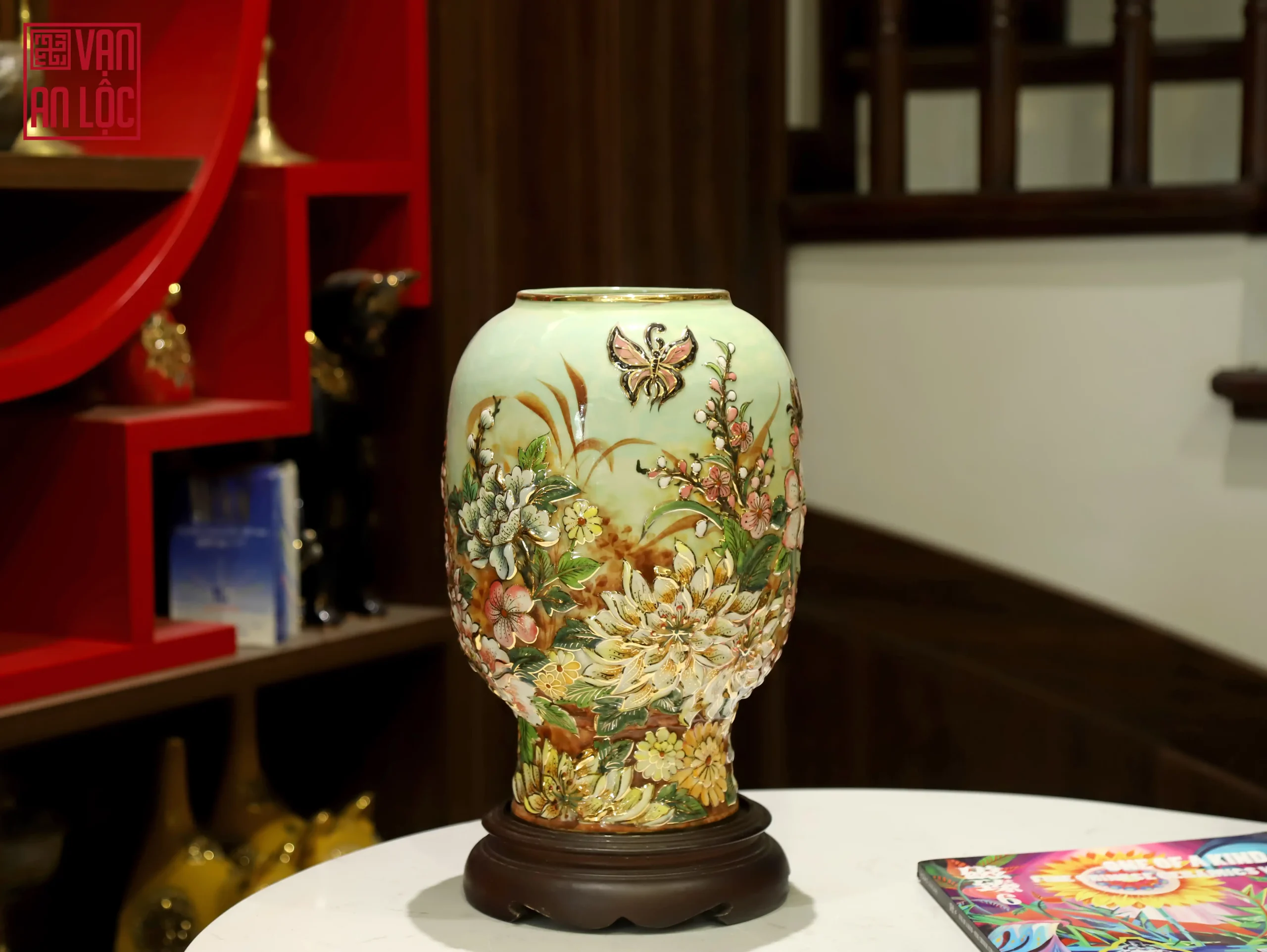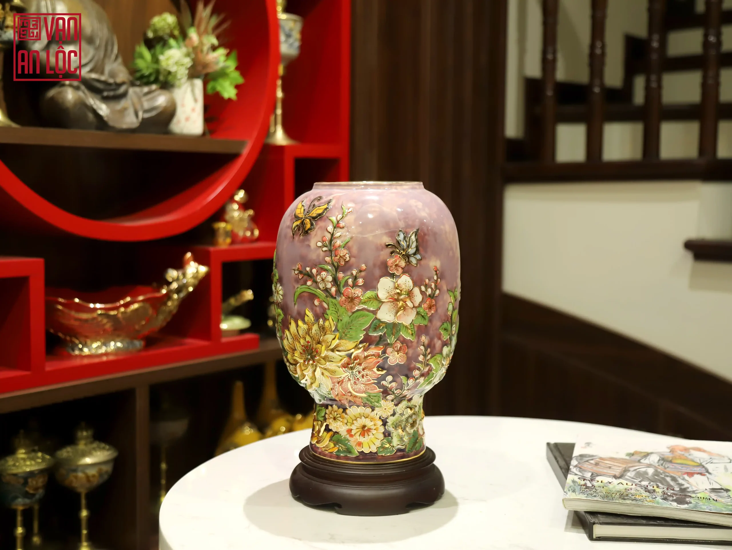 Bình hoa đắp nổi vẽ vàng Vạn An Lộc không chỉ giúp không gian thêm sức sống mà còn mang ý nghĩa thu hút tài lộc, bình an cho gia đạo. Đây cũng là lựa chọn quà tặng tân gia, quà biếu đối tác lý tưởng, khẳng định tâm ý của người tặng.