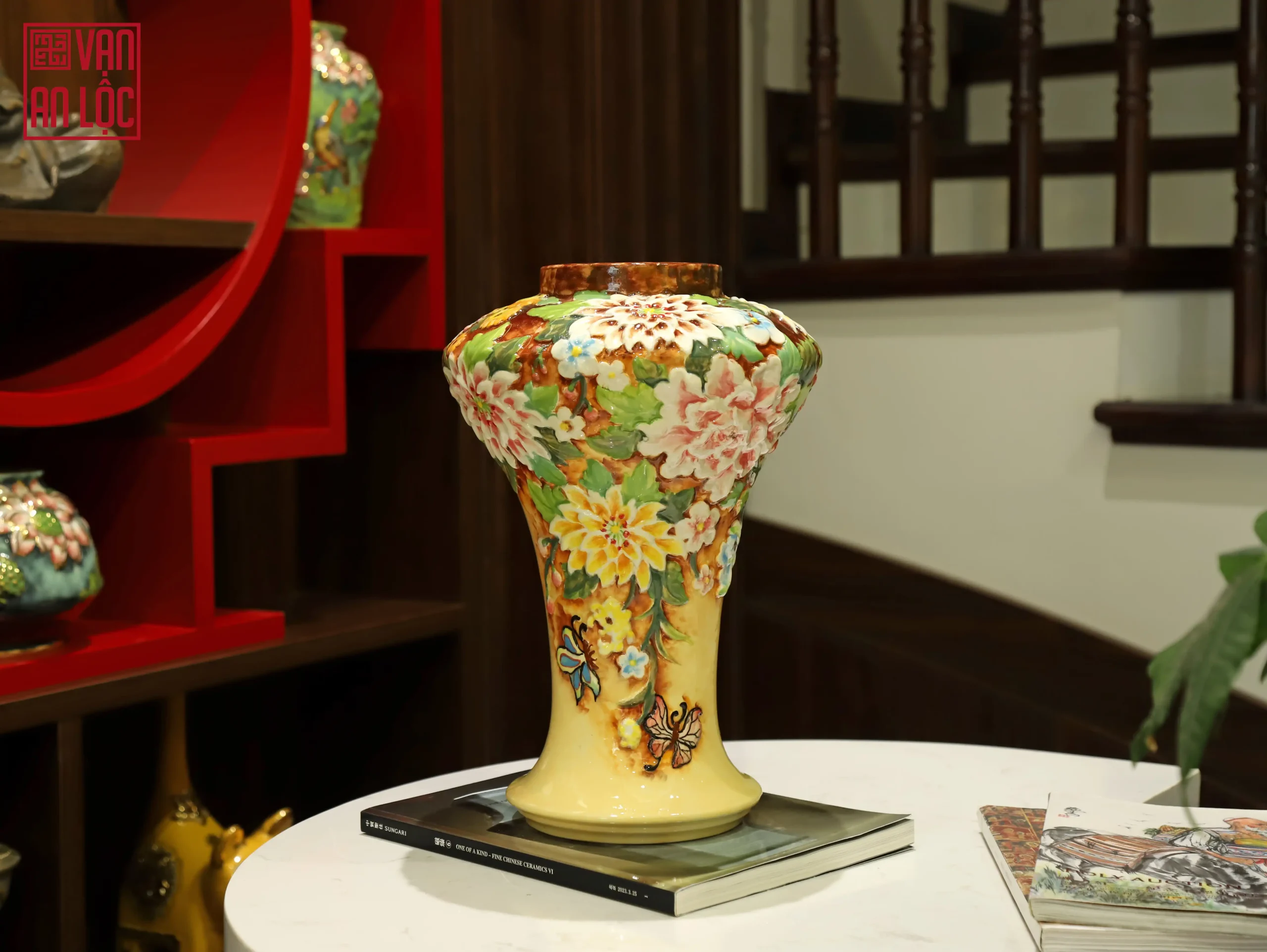 Bình hoa đắp nổi vẽ vàng Vạn An Lộc không chỉ giúp không gian thêm sức sống mà còn mang ý nghĩa thu hút tài lộc, bình an cho gia đạo. Đây cũng là lựa chọn quà tặng tân gia, quà biếu đối tác lý tưởng, khẳng định tâm ý của người tặng.