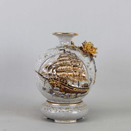 Bình Hút Lộc Đắp Nổi Vân Mây Vẽ Vàng Cao Cấp Bát Tràng.