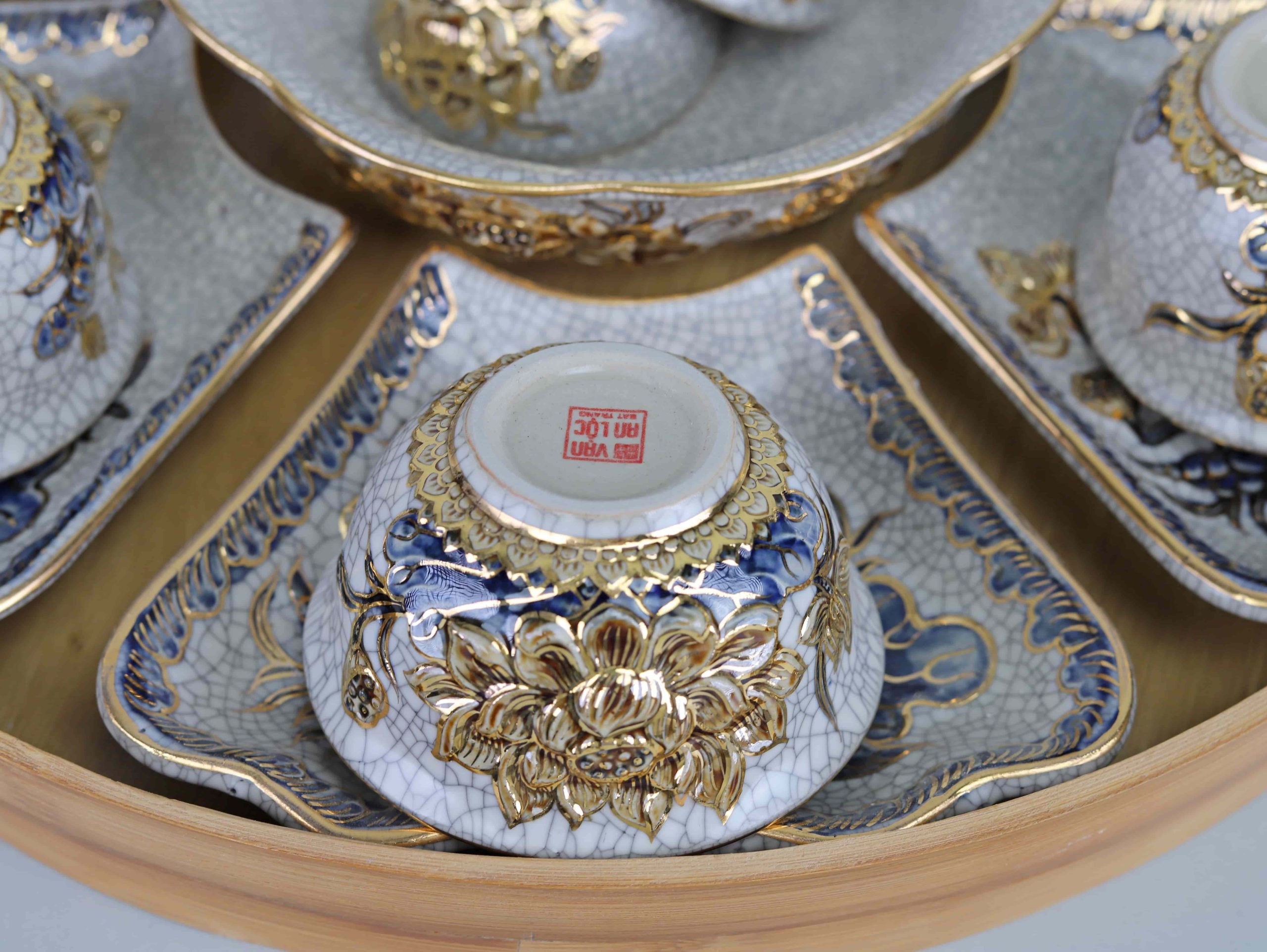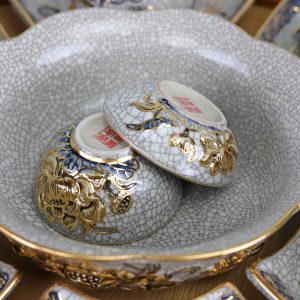 Được nung ở nhiệt độ cao trên 1200°C, bộ đồ ăn có cốt gốm cực kỳ đanh chắc, chịu được va đập tốt và bền màu vĩnh cửu. Quy trình nung này giúp loại bỏ hoàn toàn các tạp chất và chì, đảm bảo an toàn tuyệt đối cho sức khỏe người sử dụng. Bề mặt men rạn nhưng mịn màng, rất dễ dàng vệ sinh, không bám bẩn, phù hợp cho cả bữa cơm gia đình hàng ngày lẫn những buổi tiệc trang trọng.