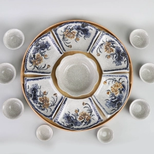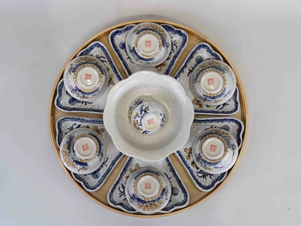 1 Bộ đồ ăn HMT bao gồm: 6 Bát con, 6 Đĩa cánh, 1 Tô canh, 1 Bát mắm, 1 Bát muối – tặng kèm khay tre.