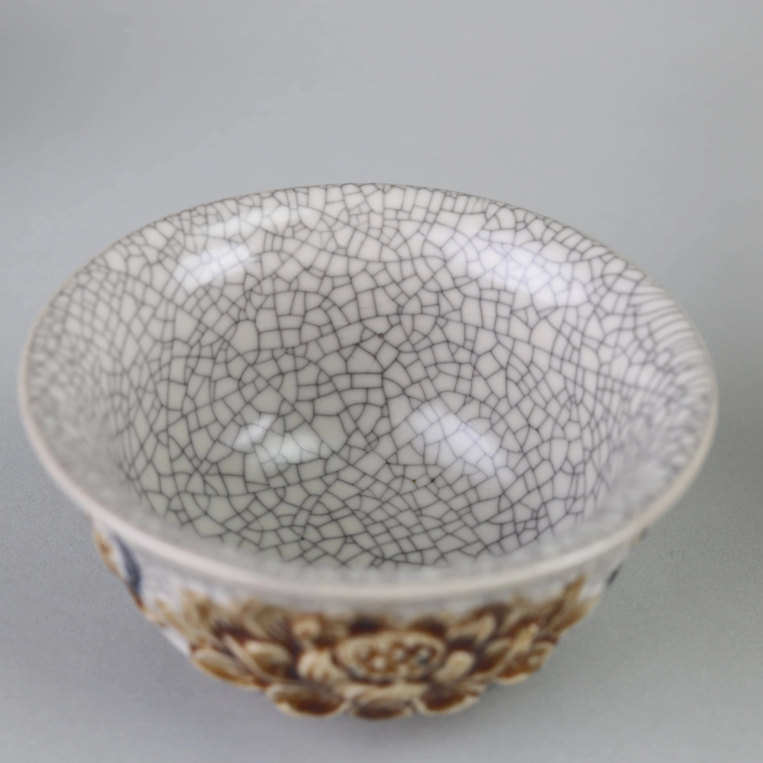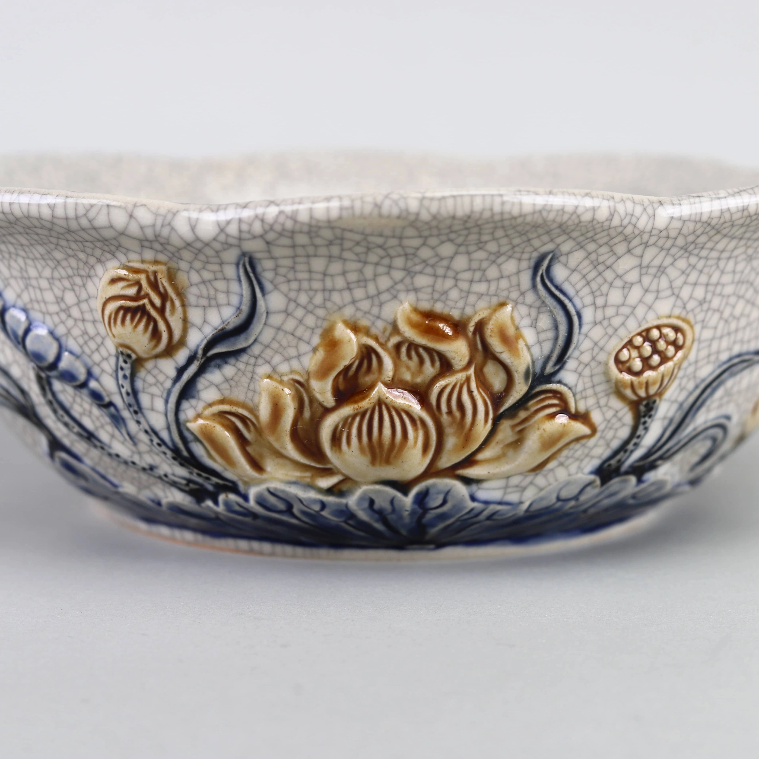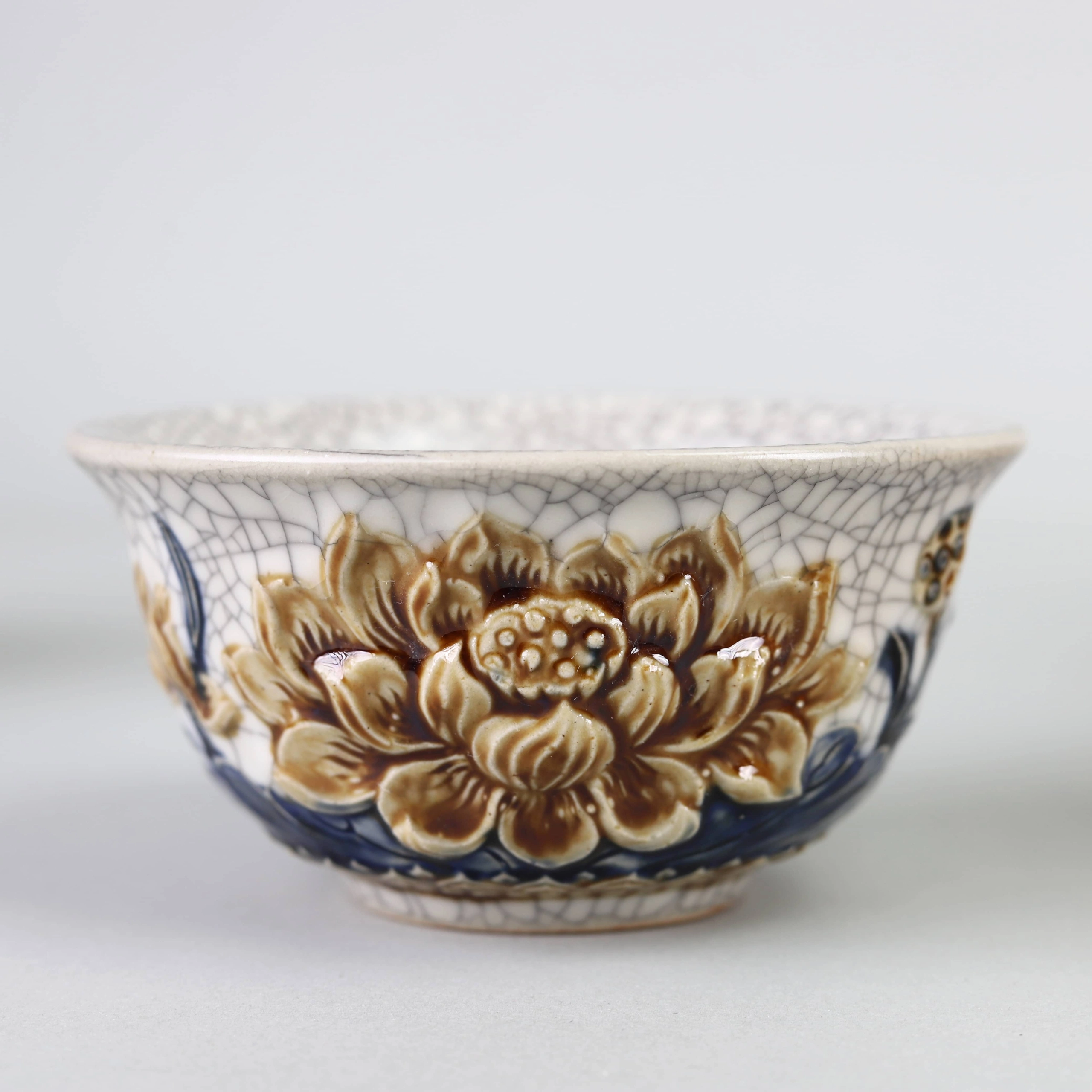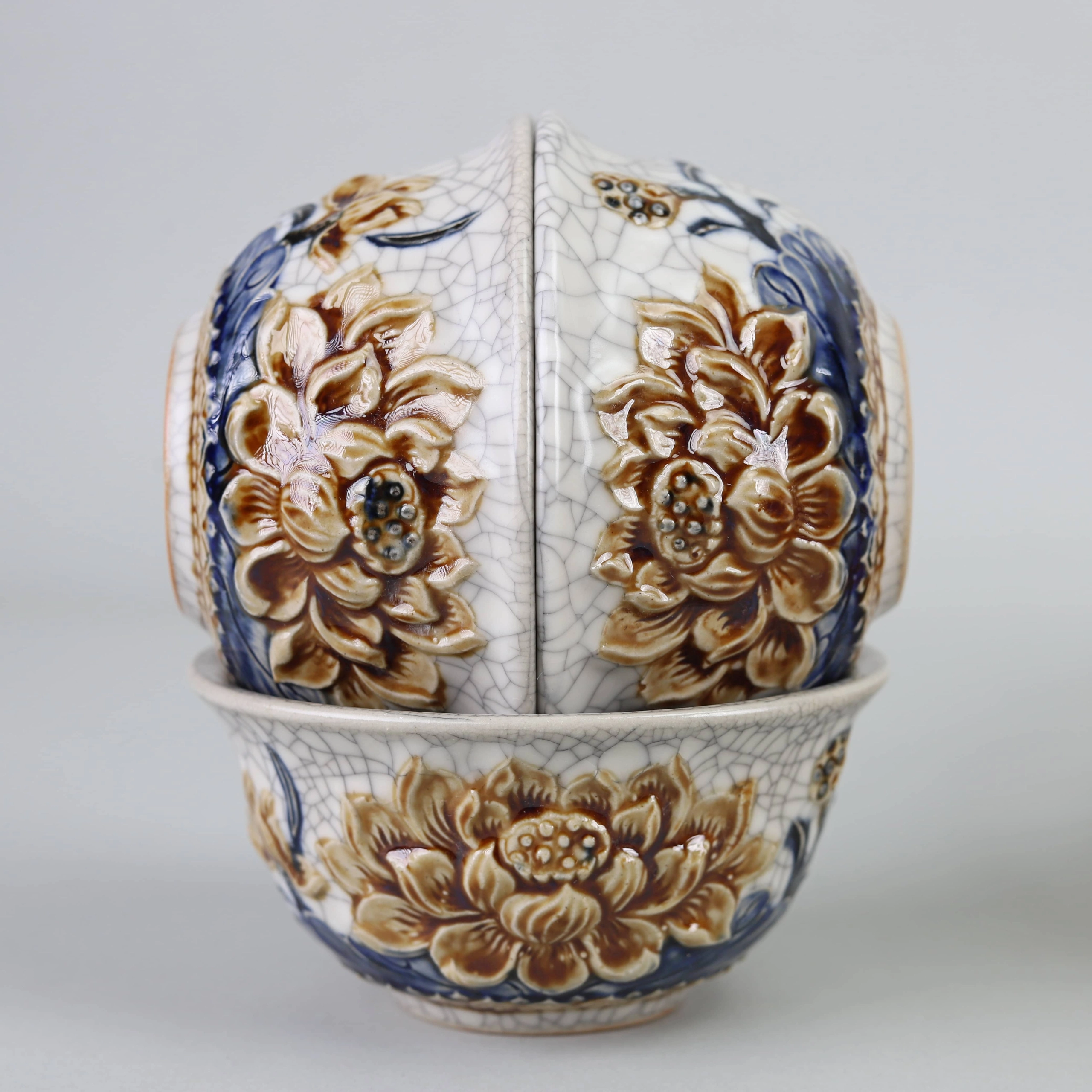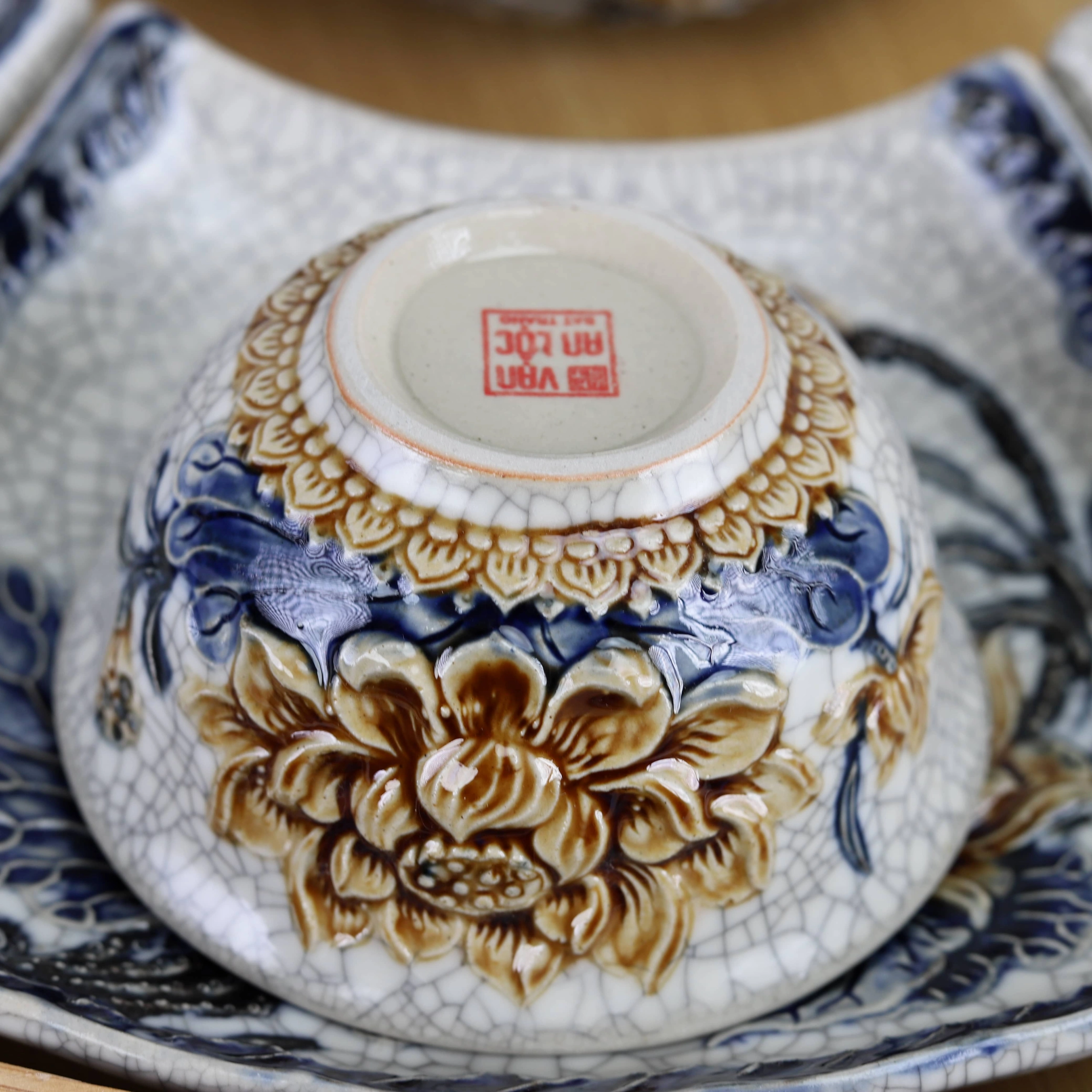 Bộ Đồ Ăn Hoa Mặt Trời Men Rạn Đắp Nổi Cao Cấp Bát Tràng