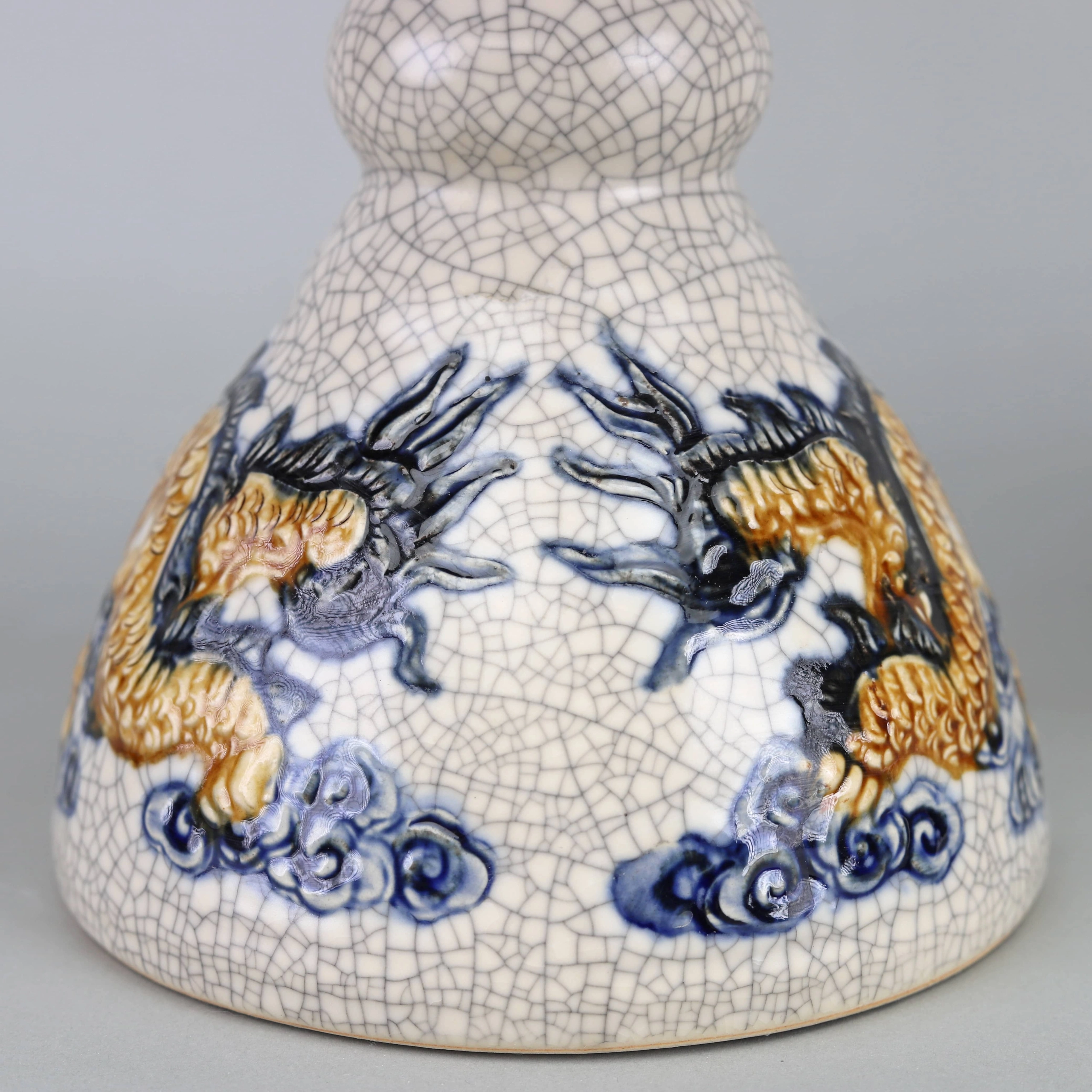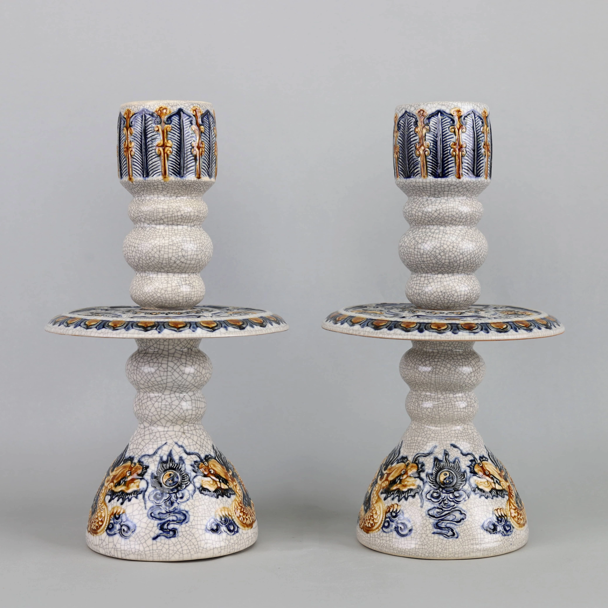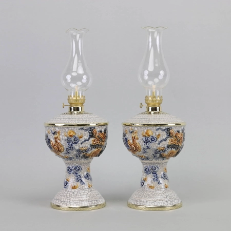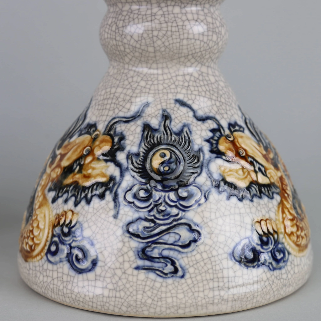 Cây Nến Song Long Chầu Nguyệt Men Rạn Đắp Nổi Cao Cấp Bát Tràng