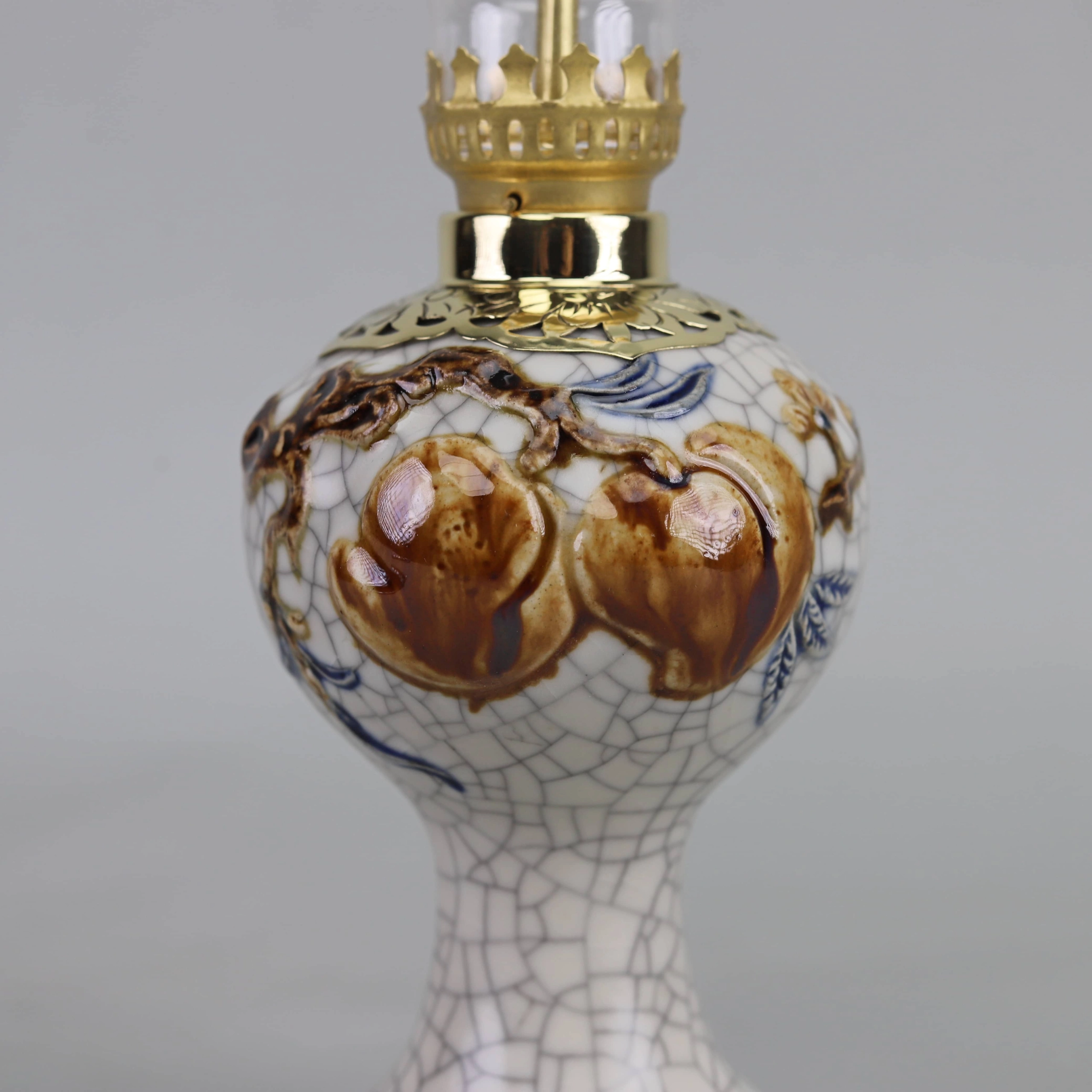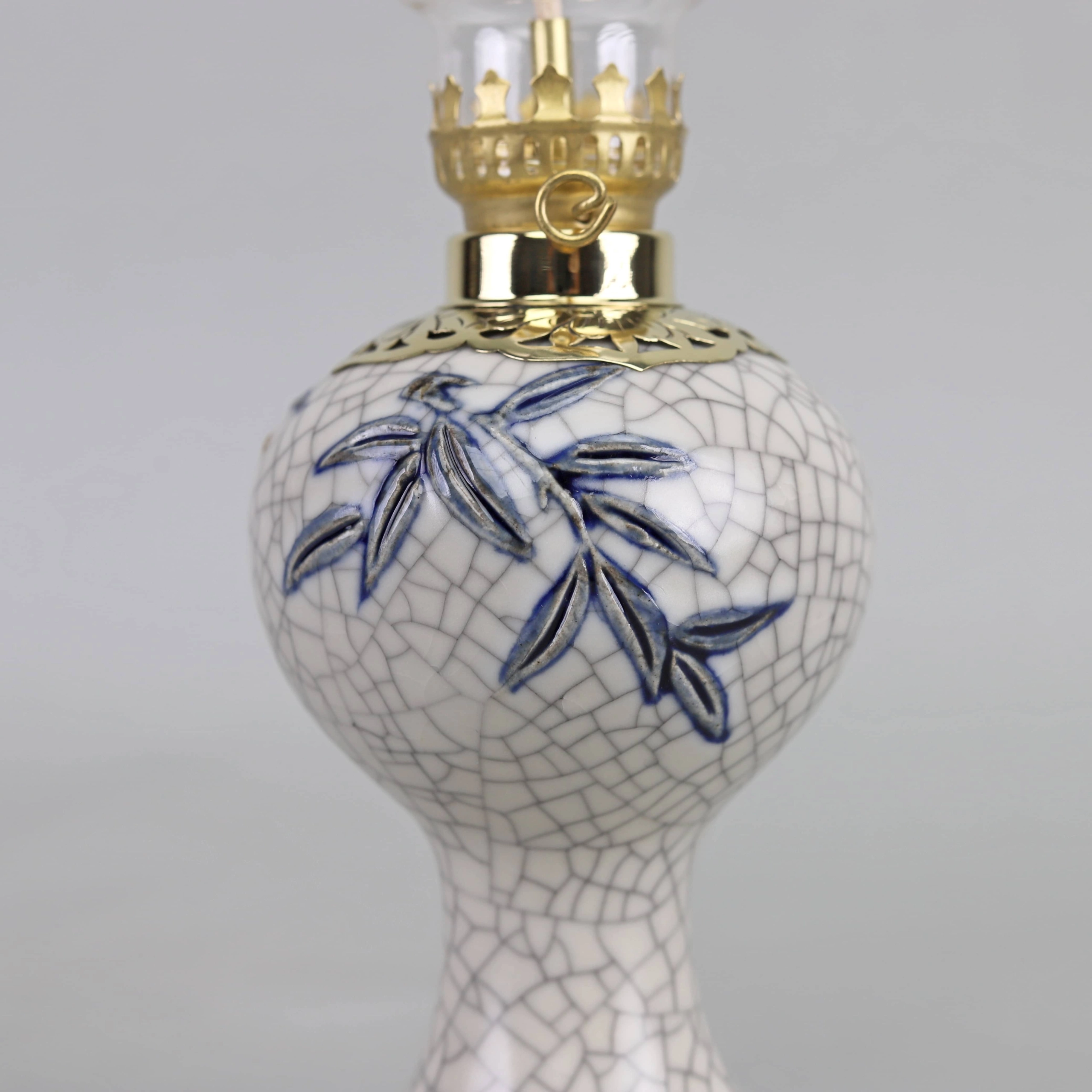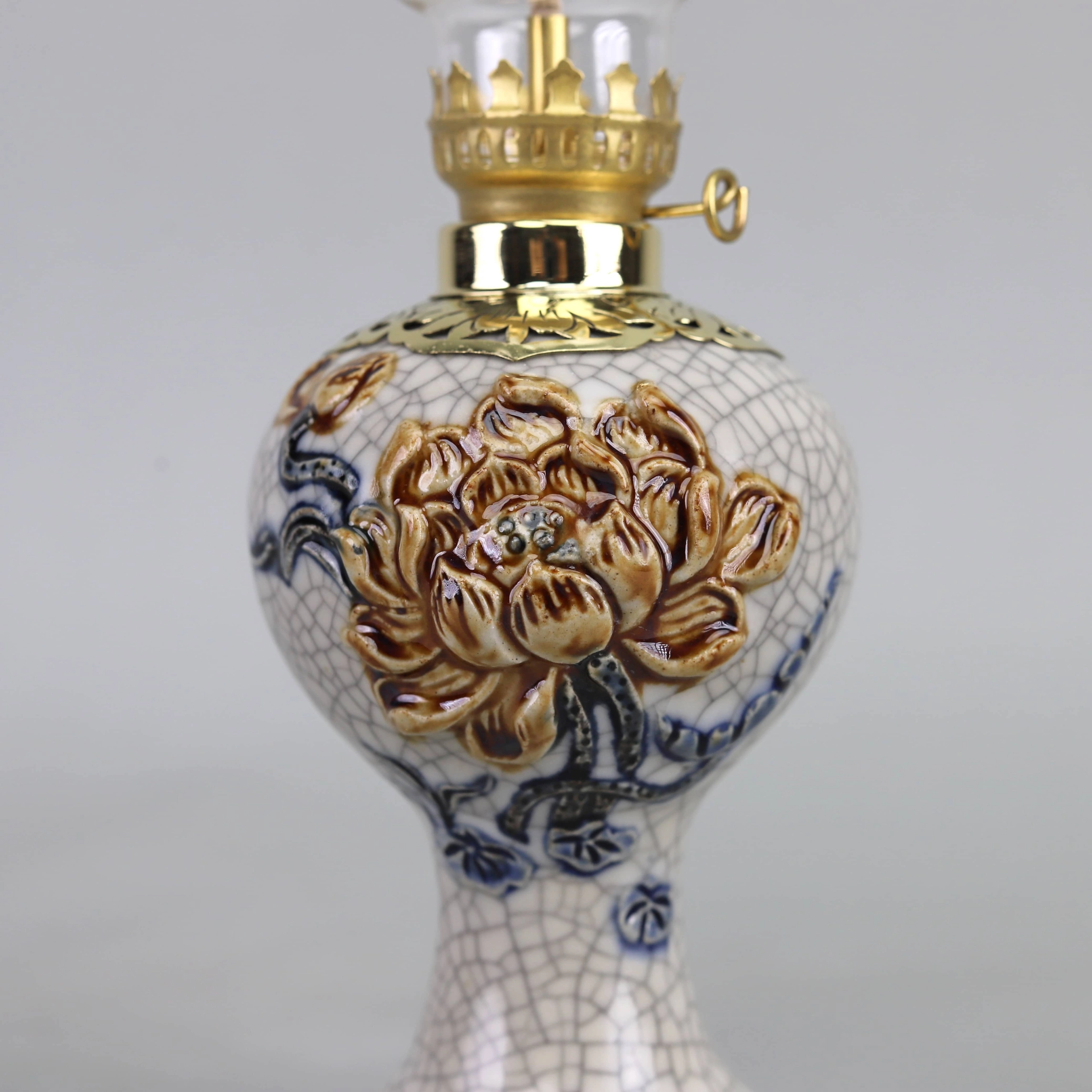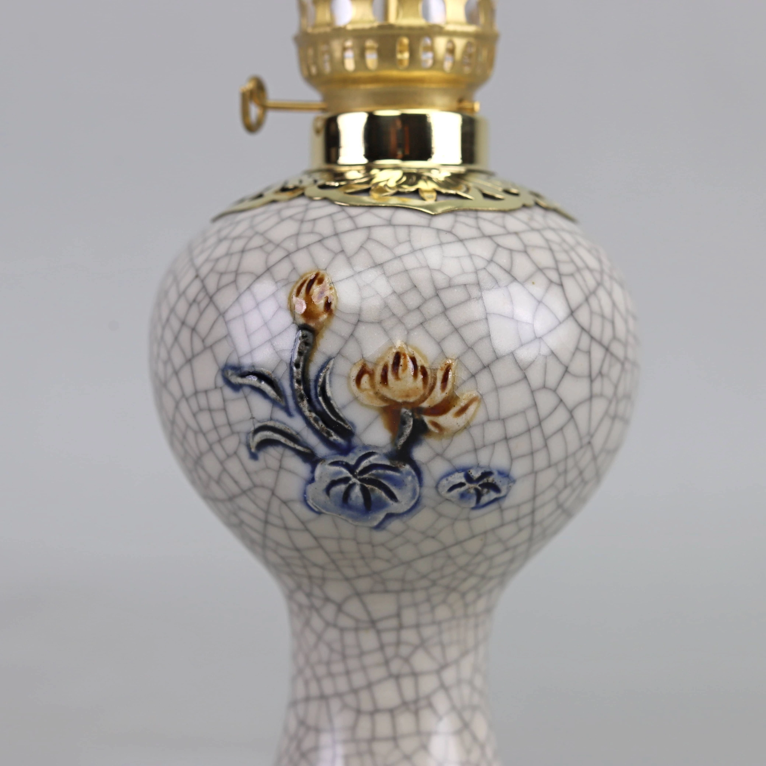 Đèn Dầu Vai Tròn Men Rạn Đắp Nổi Cao Cấp Bát Tràng