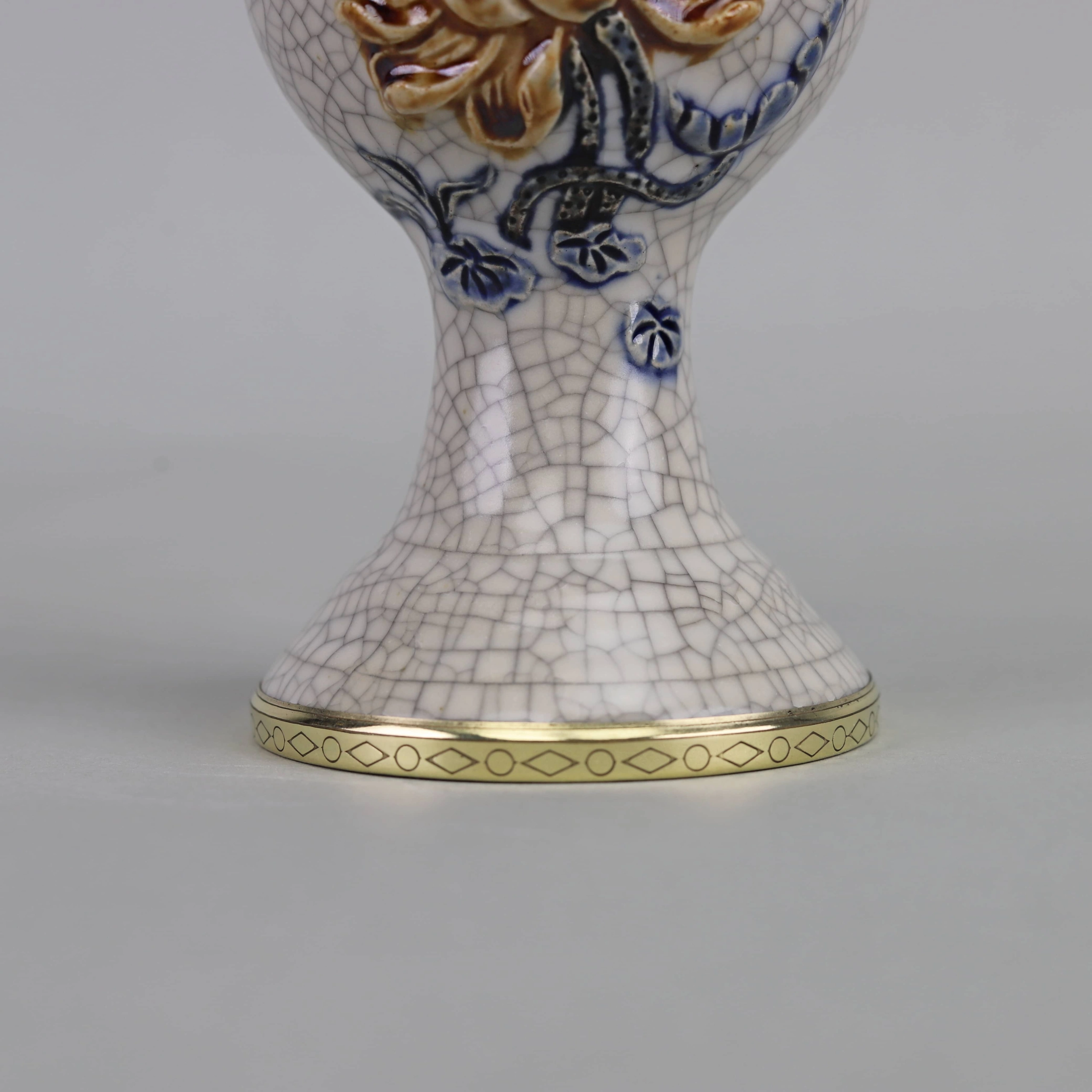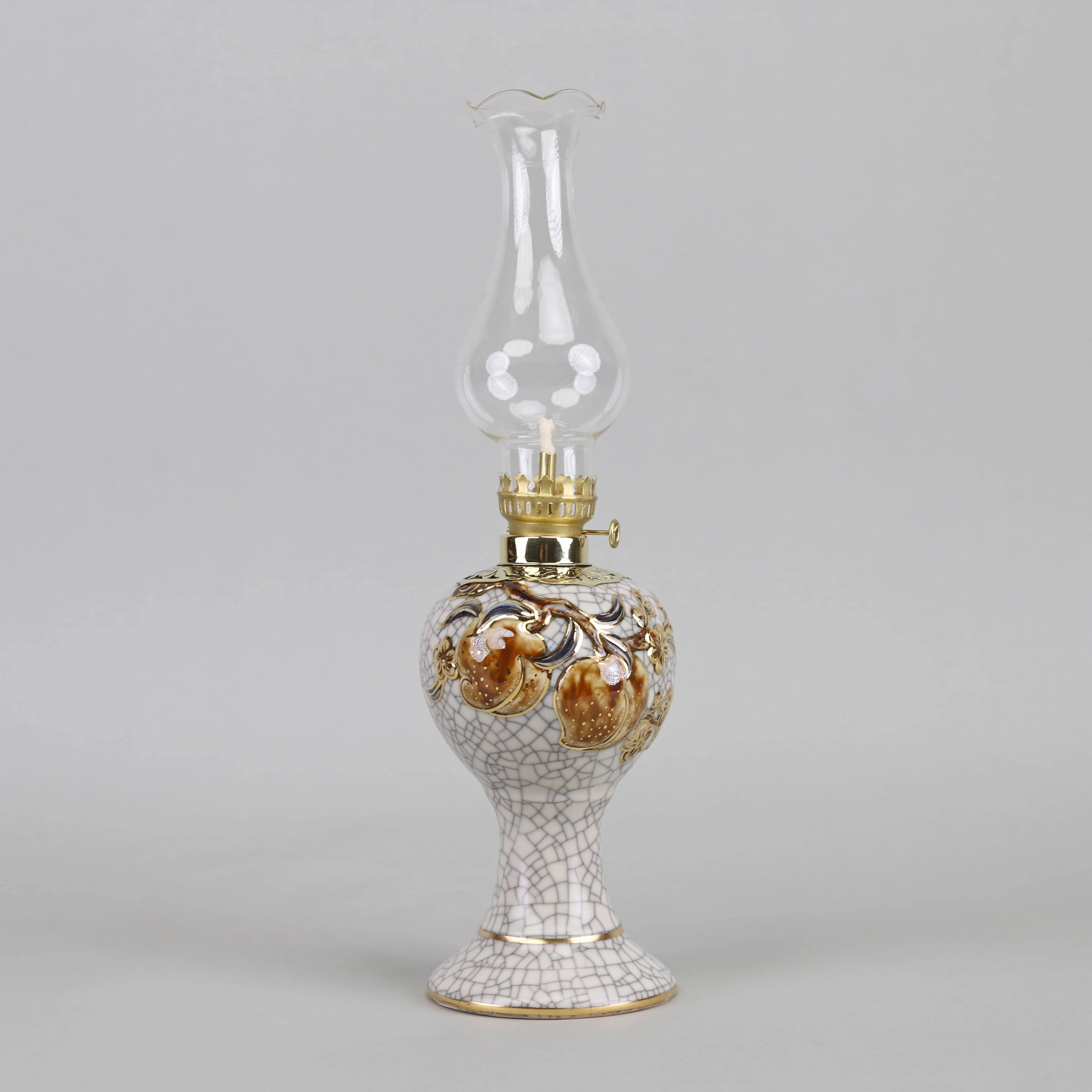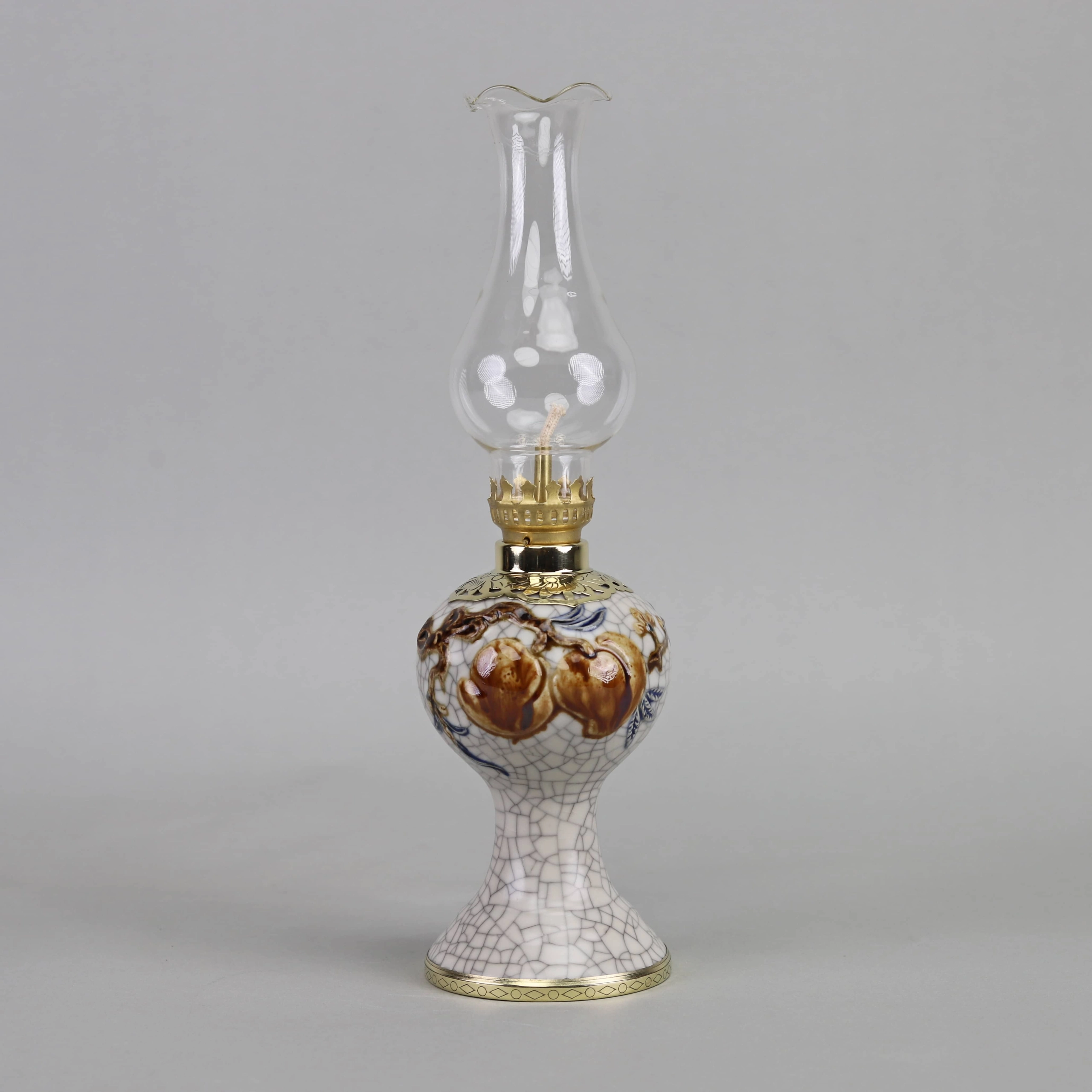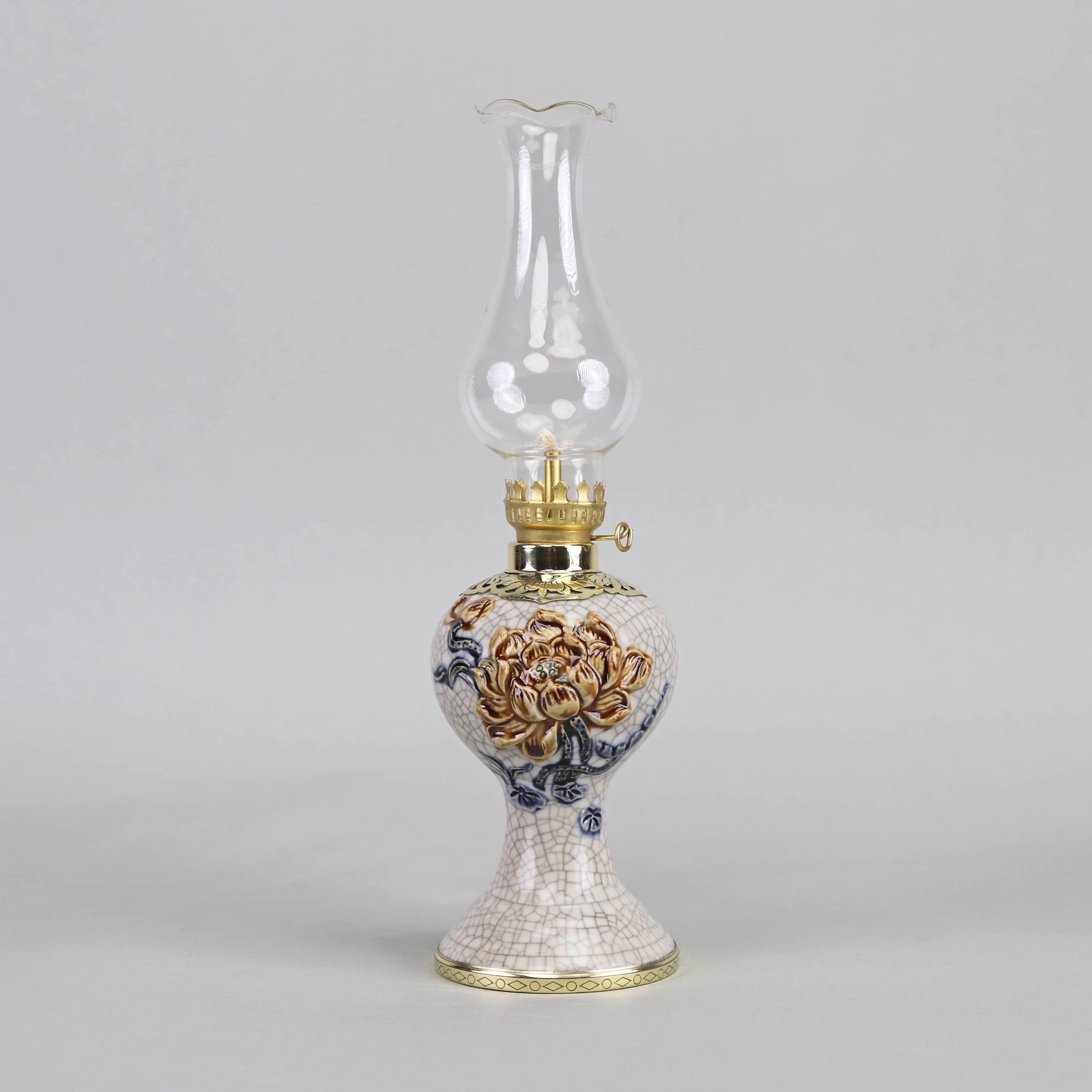 Đèn Dầu Vai Tròn Men Rạn Đắp Nổi Cao Cấp Bát Tràng
