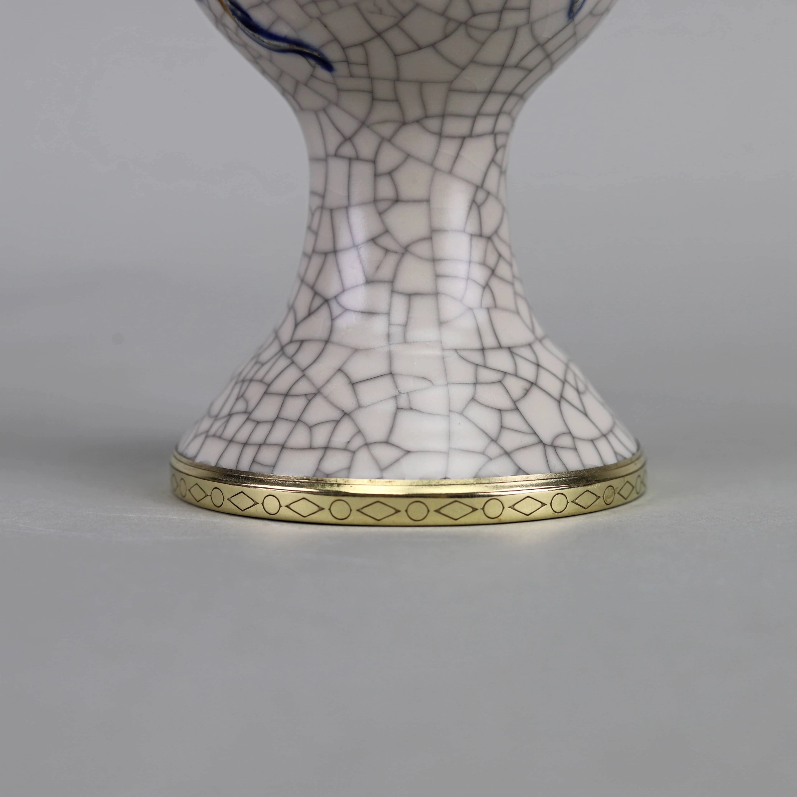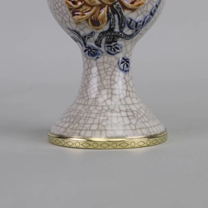 Đèn dầu tròn của Vạn An Lộc mang trên mình lớp men rạn cổ đặc trưng của làng gốm Bát Tràng – một loại men trứ danh với những đường rạn chạy tự nhiên, trầm mặc như dòng chảy của thời gian. Mỗi sản phẩm là một bản thể duy nhất, không trùng lặp, tạo nên vẻ đẹp hoài cổ, uy nghiêm và cực kỳ phù hợp với không gian thờ cúng truyền thống của người Việt.