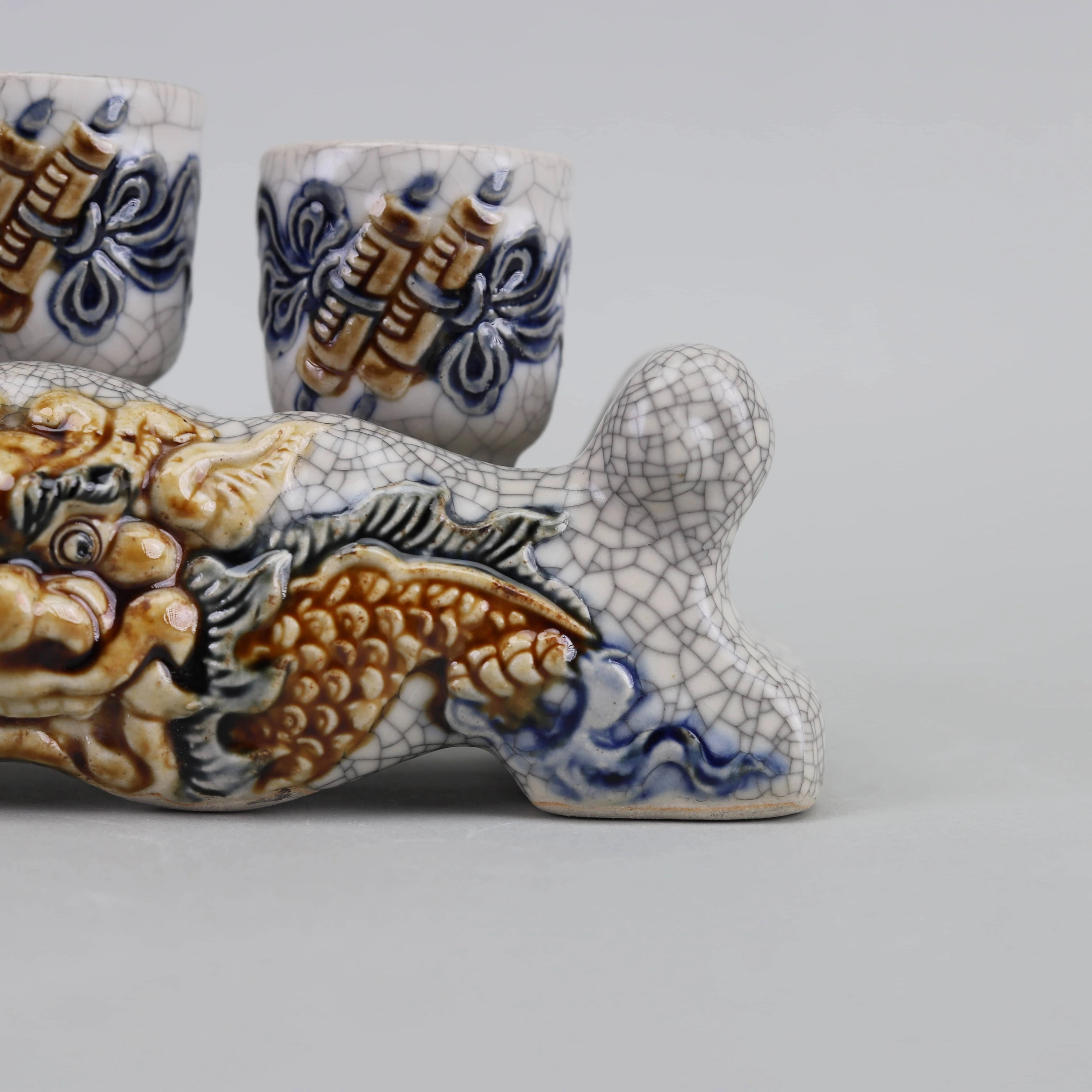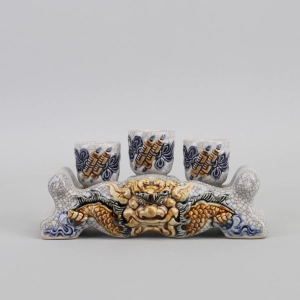 Kỷ Nước Rồng 3 Chén - Ngai Men Rạn Đắp Nổi Cao Cấp Bát Tràng