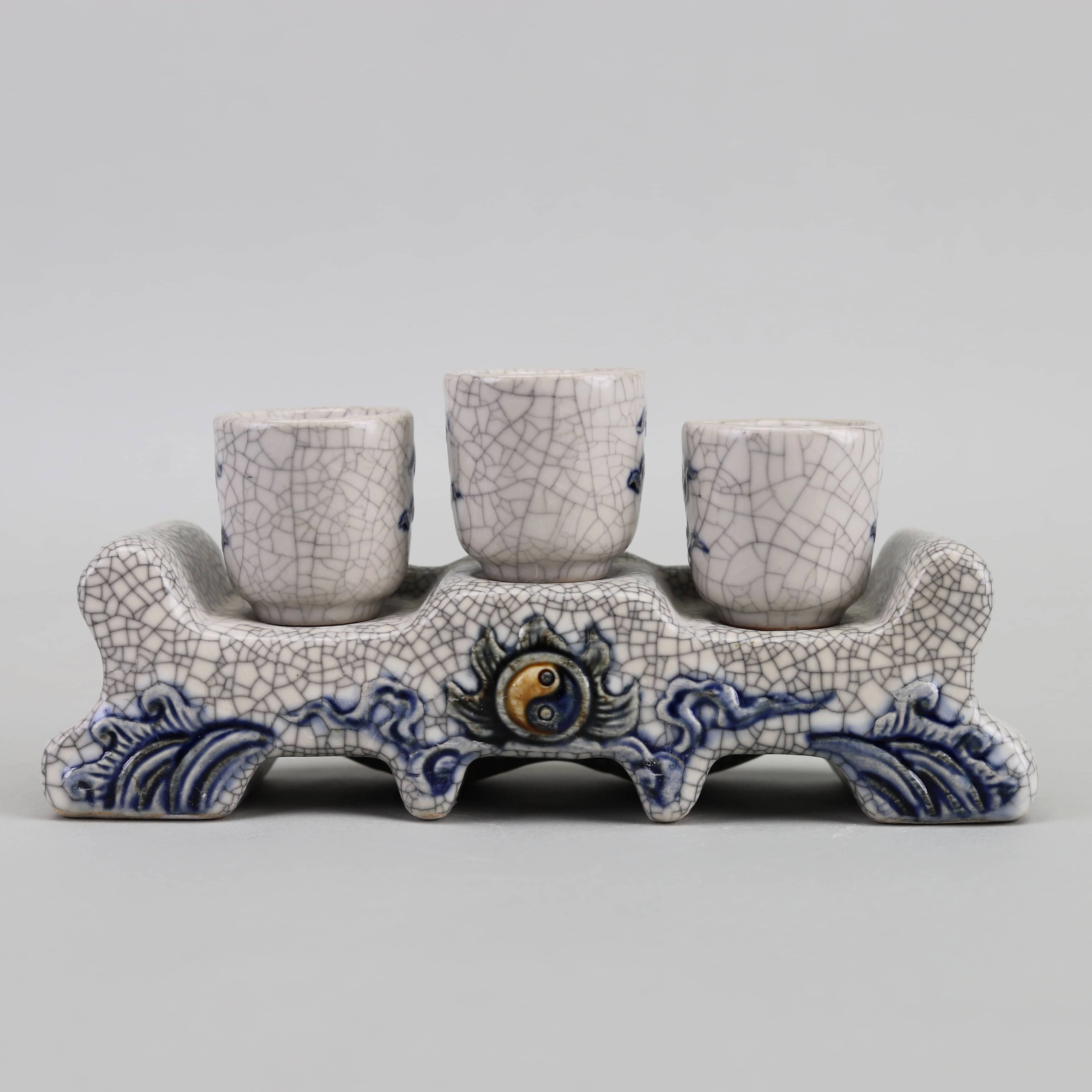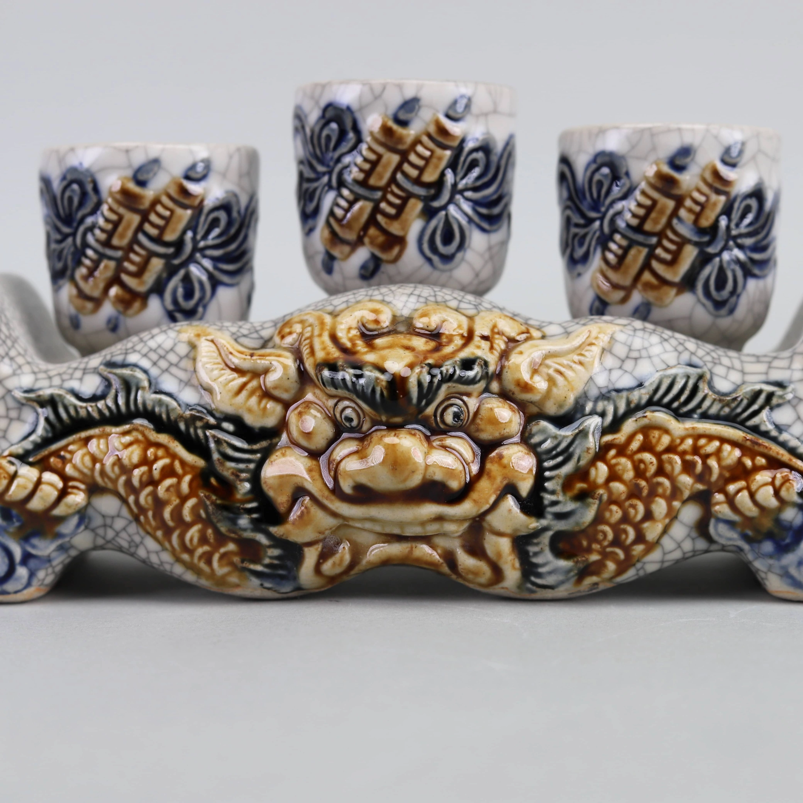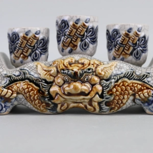 Kỷ Nước Rồng 3 Chén – Ngai Men Rạn Đắp Nổi Cao Cấp Bát Tràng