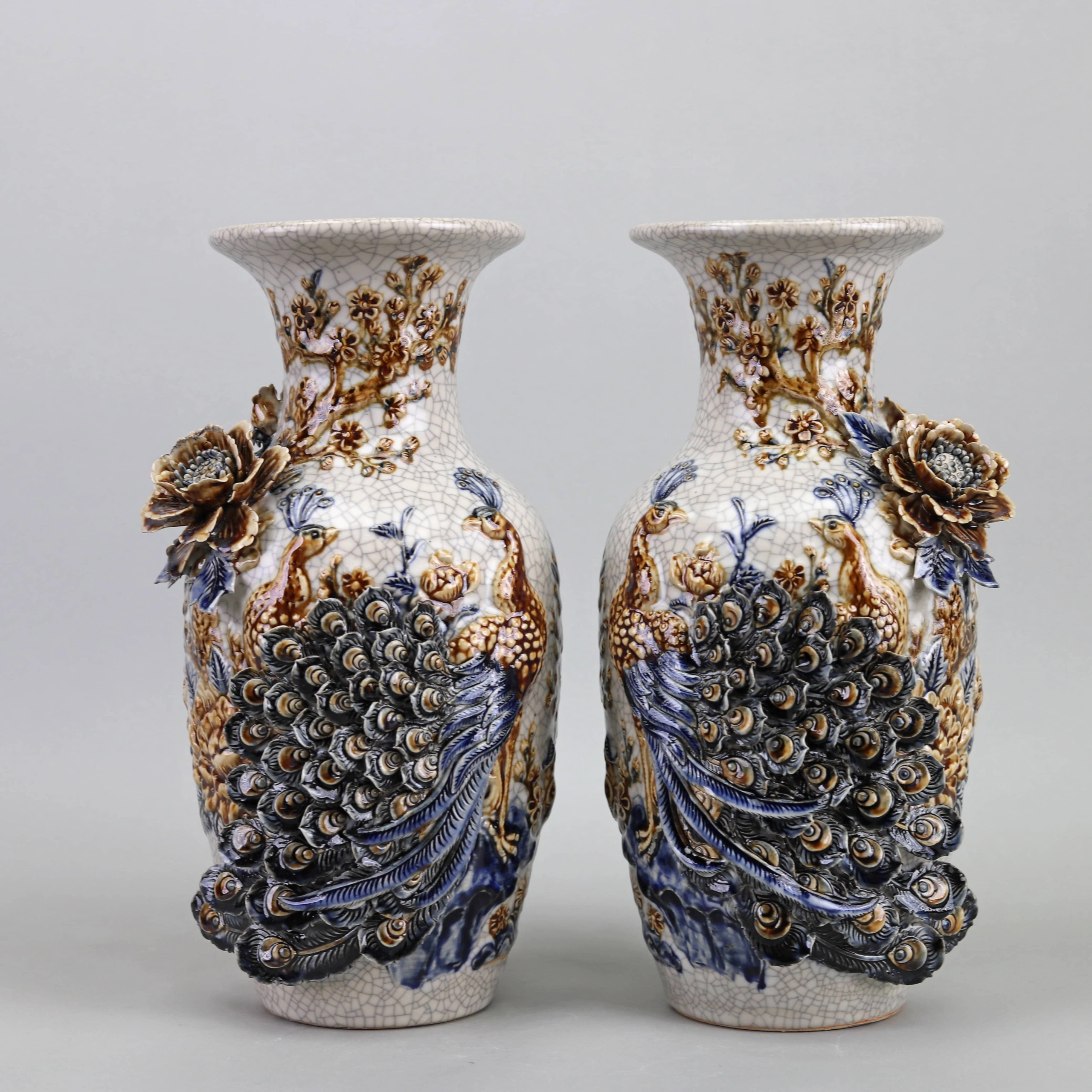 Lọ Hoa Thờ Công Danh Phú Quý Dáng Lộc Bình Kênh Men Rạn Đắp Nổi Cao Cấp Bát Tràng