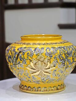 Chất liệu men: Thạp thường được phủ các loại men truyền thống như men ngọc, men rạn, men da lươn… tạo nên vẻ đẹp cổ kính, trầm ấm, càng làm nổi bật các đường nét chạm khắc tinh xảo.