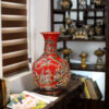 Tỳ Bà Phú Quý Trường Xuân 45cm Men Đỏ Bát Tràng
